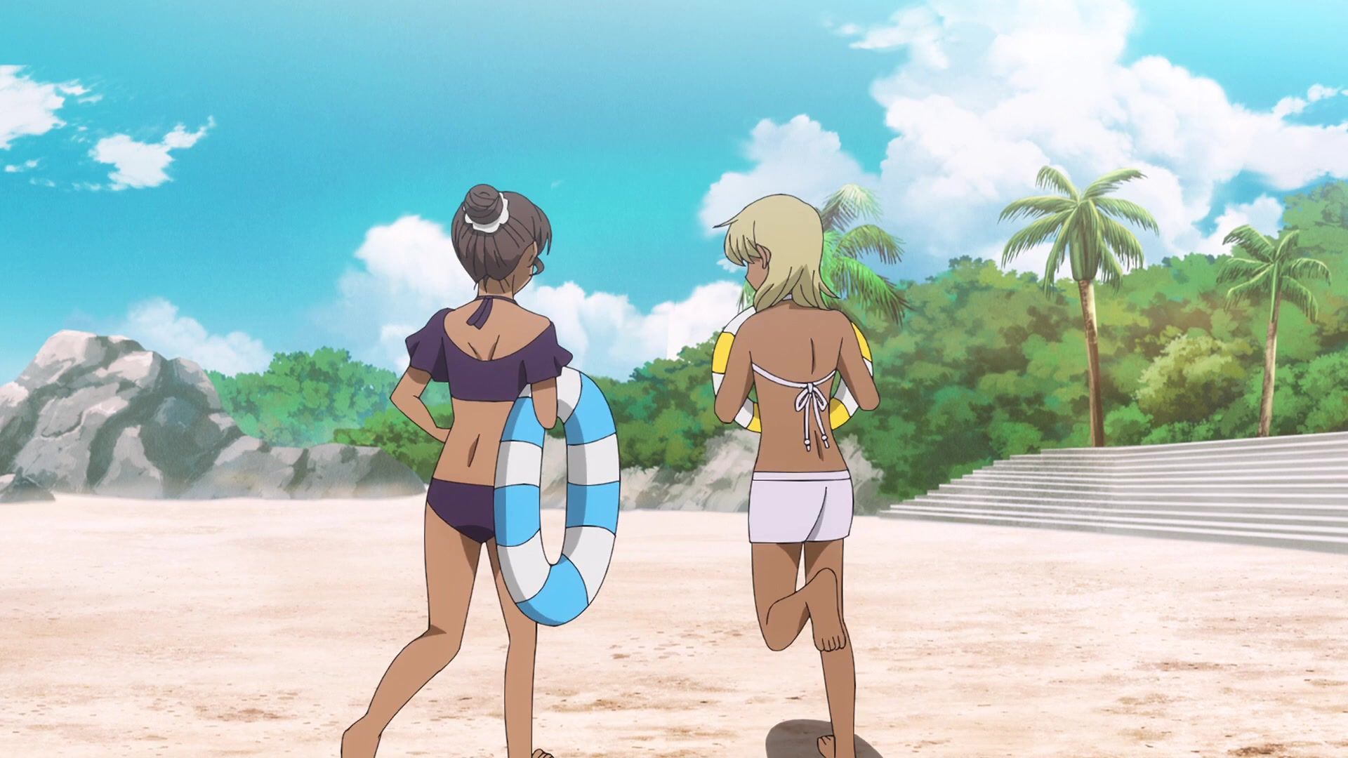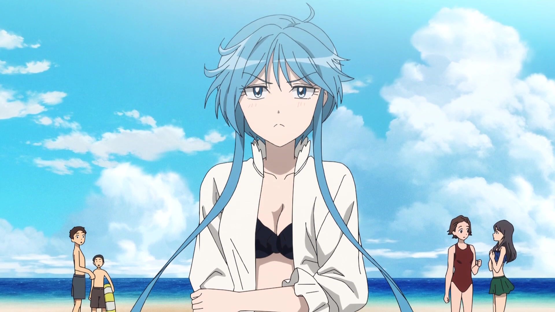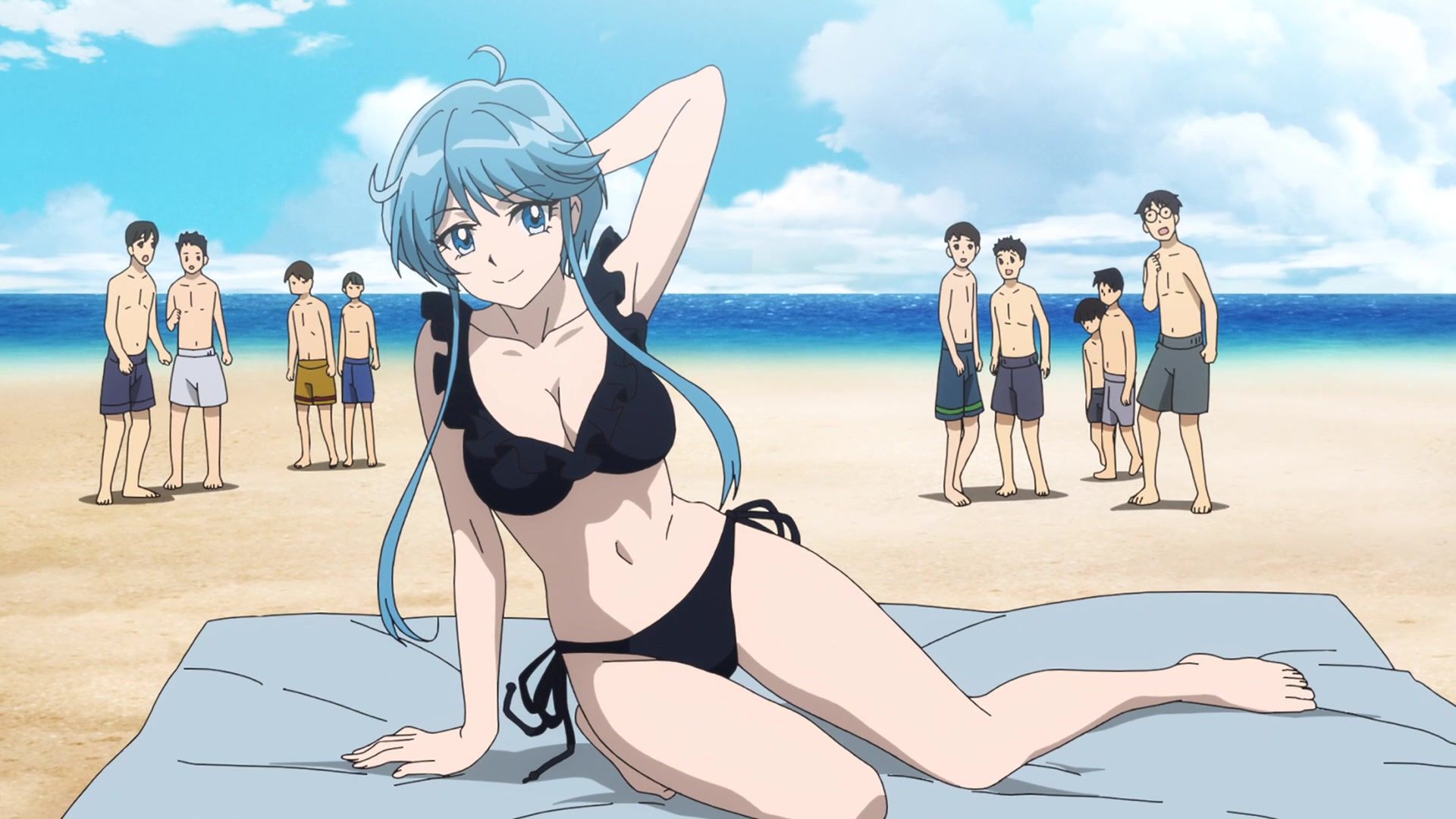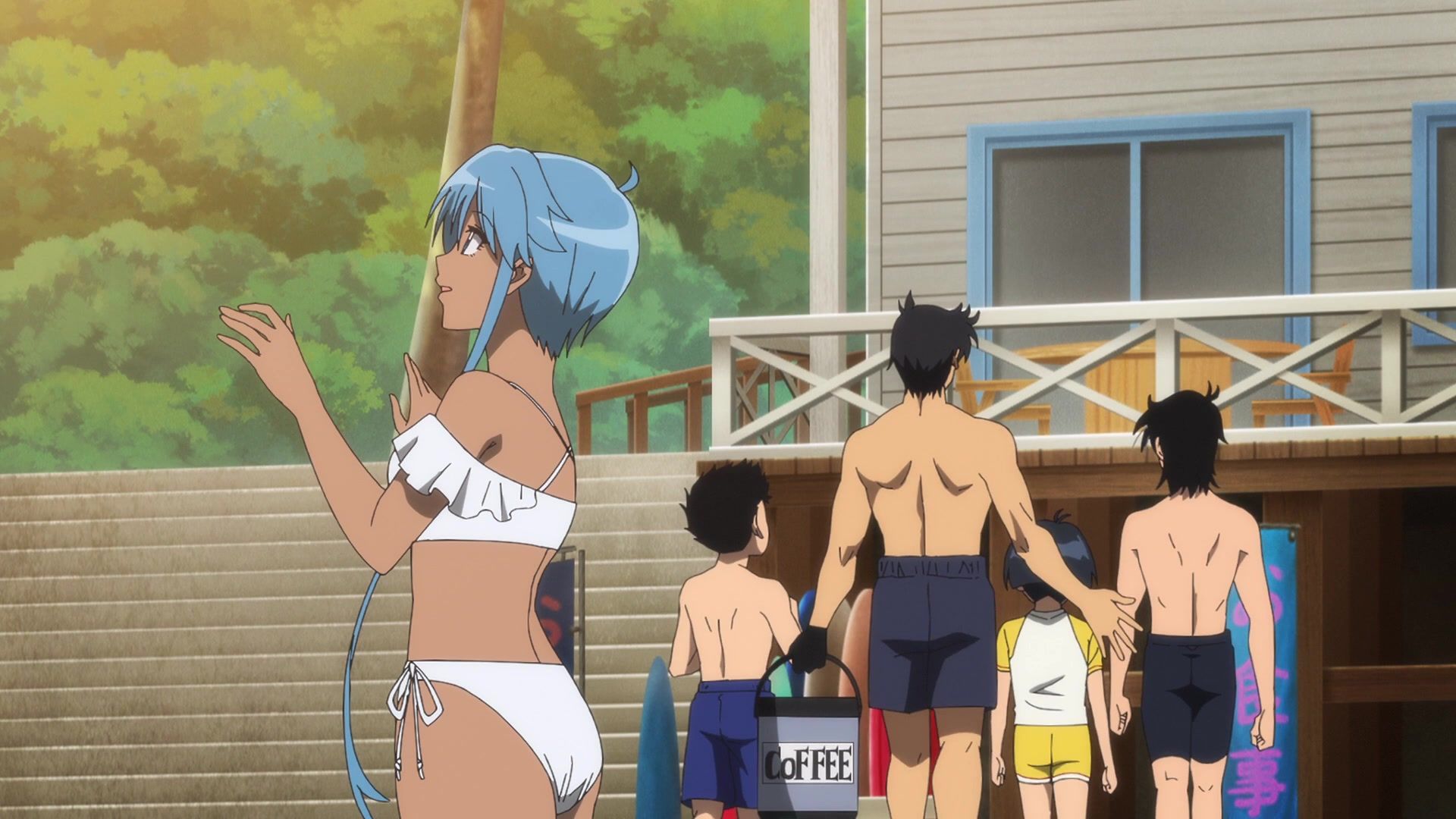 …Fantastic, the fanservice snow girl again. For a beach episode, so extra fanservice on top. I don’t expect Shakespeare from this show, but it’s not comparing well lately even to the pure fanservice schlock of the slave licking and petting show. Bikinis for kids and feeding her iced coffee makes her tan and busty. Could’ve at least dragged along the furry dude and slapped him in a speedo. If we’re going to be trashy and dumb, let’s go whole hog.