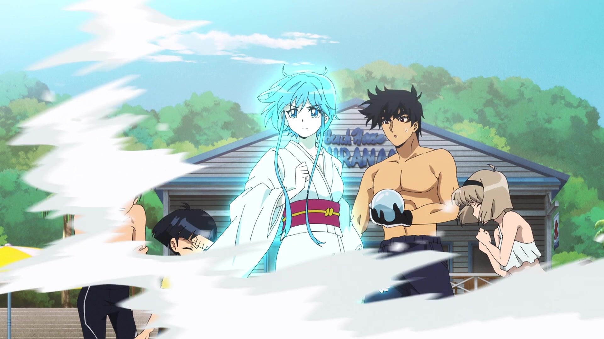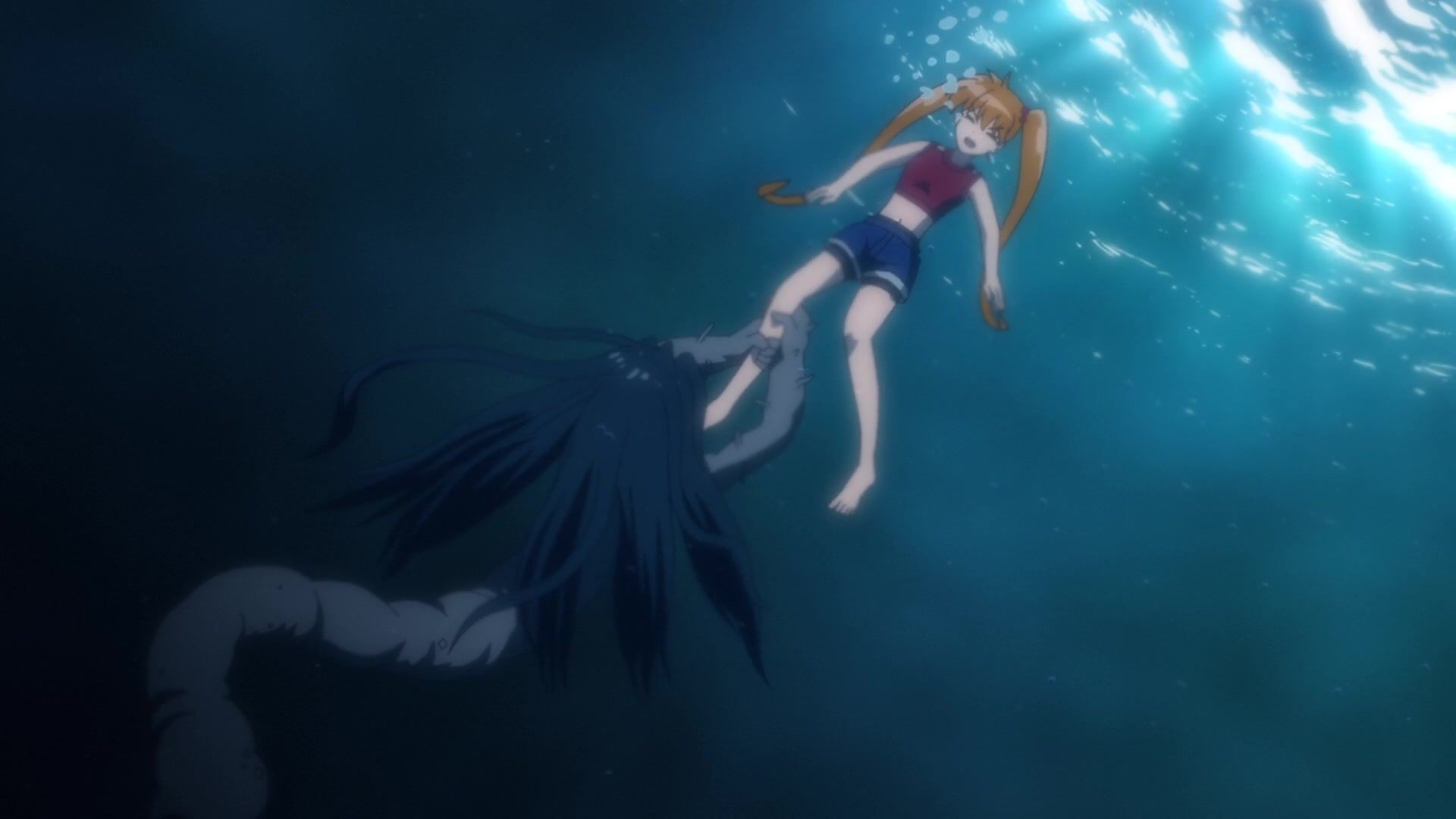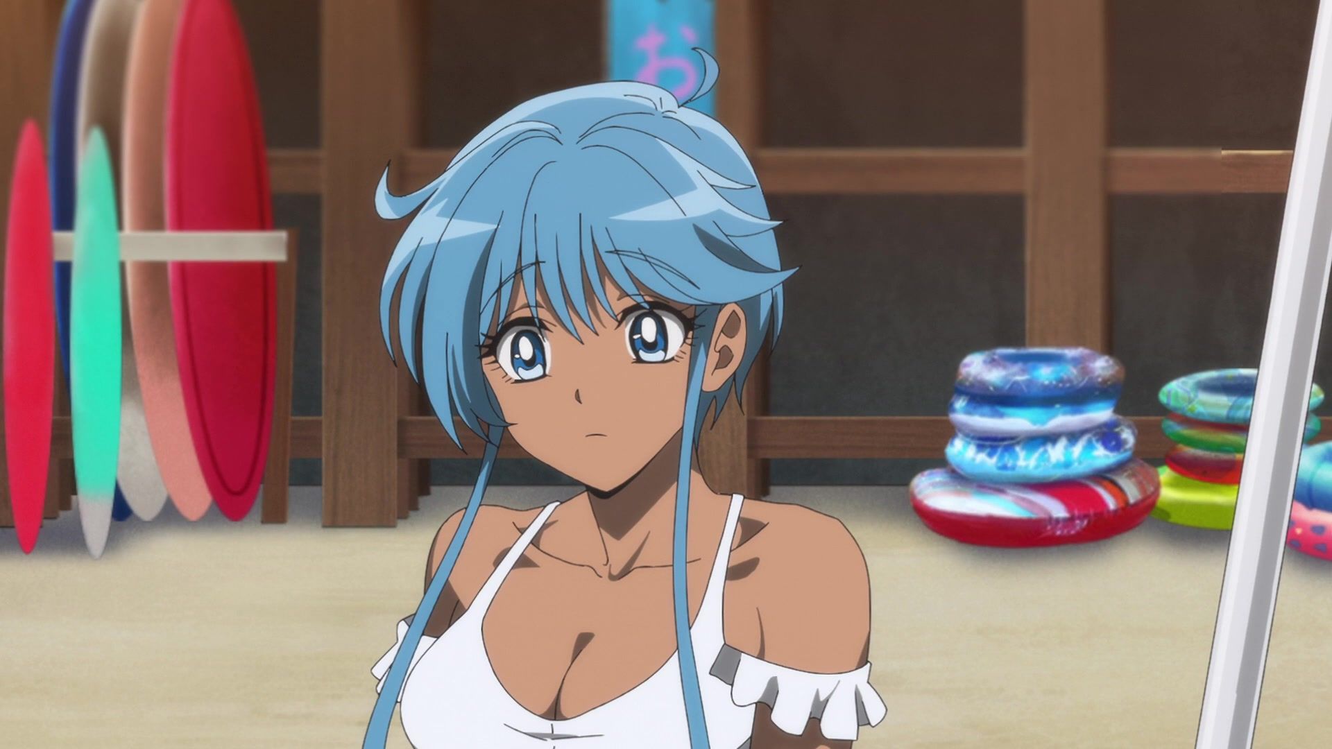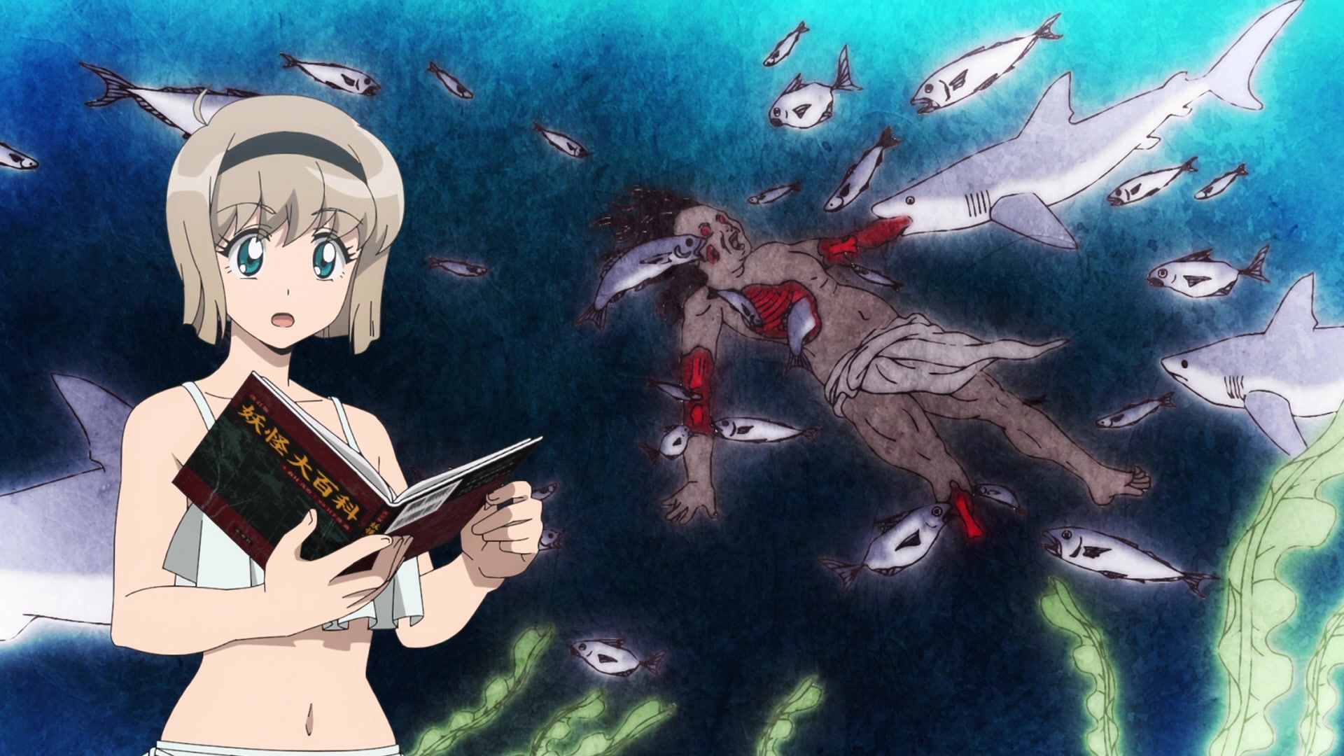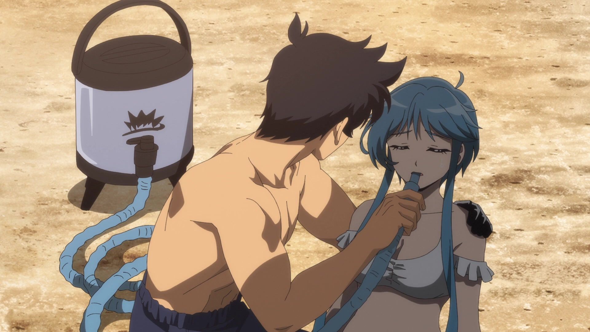 …Fantastic, the fanservice snow girl again. For a beach episode, so extra fanservice on top. I don’t expect Shakespeare from this show, but it’s not comparing well lately even to the pure fanservice schlock of the slave licking and petting show. Bikinis for kids and feeding her iced coffee makes her tan and busty. Could’ve at least dragged along the furry dude and slapped him in a speedo. If we’re going to be trashy and dumb, let’s go whole hog.