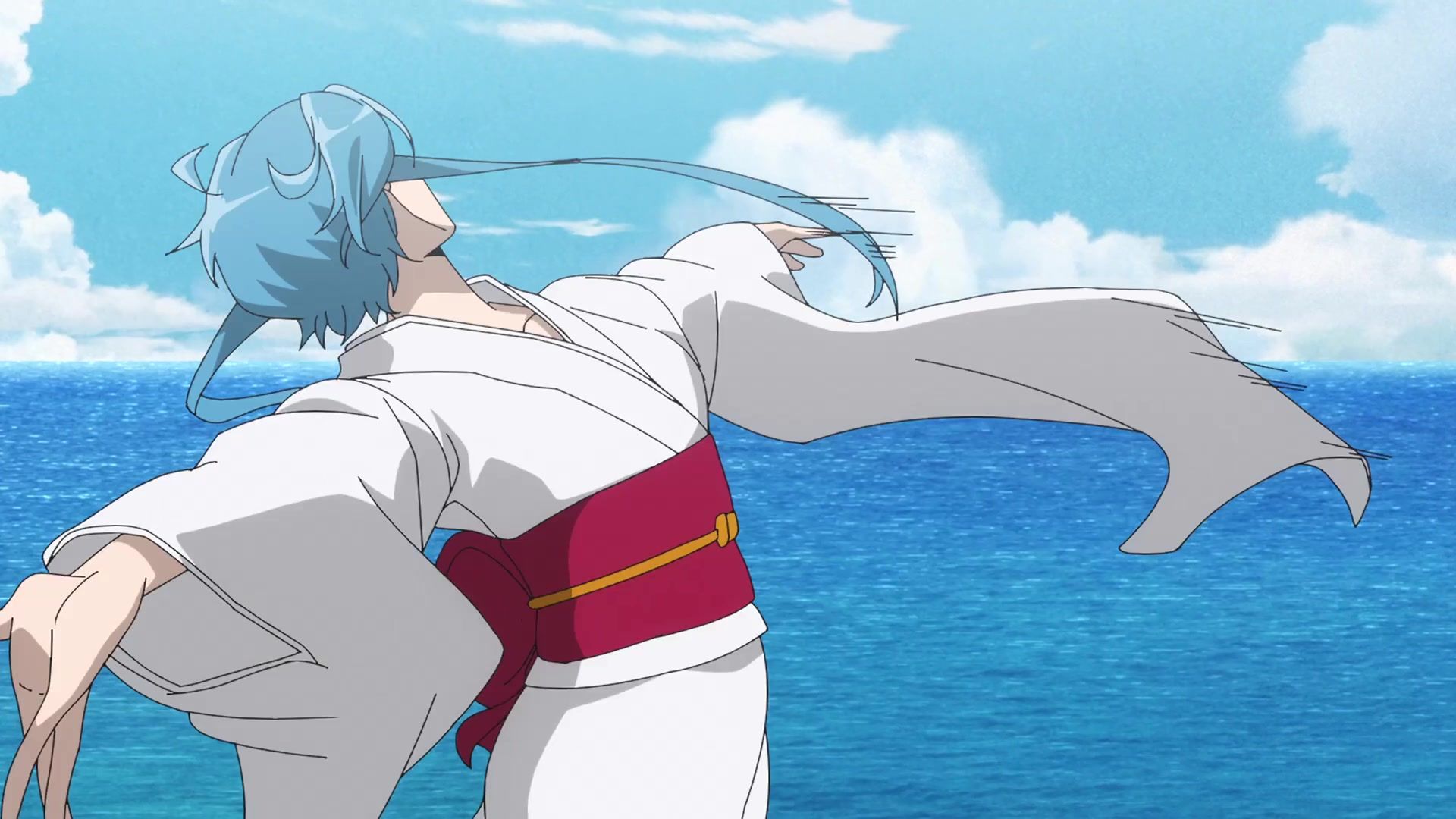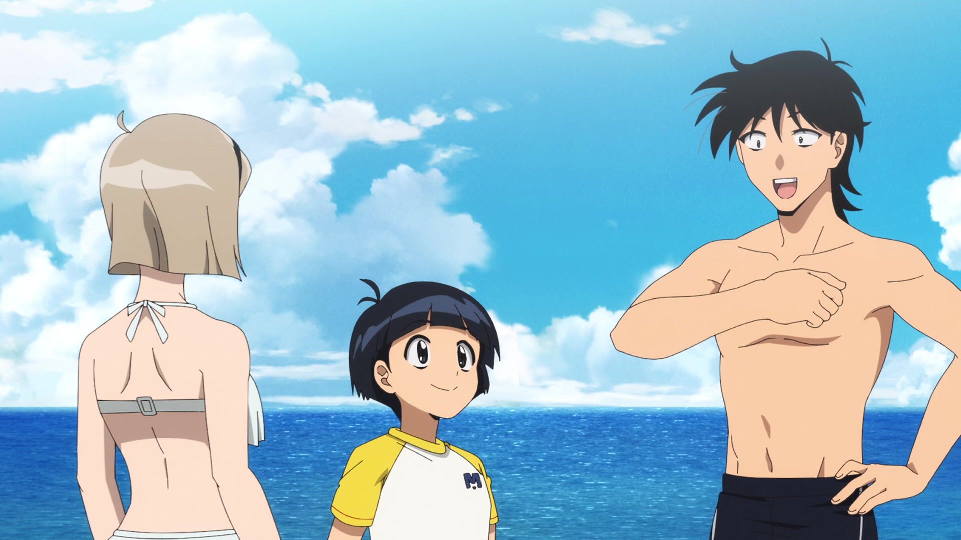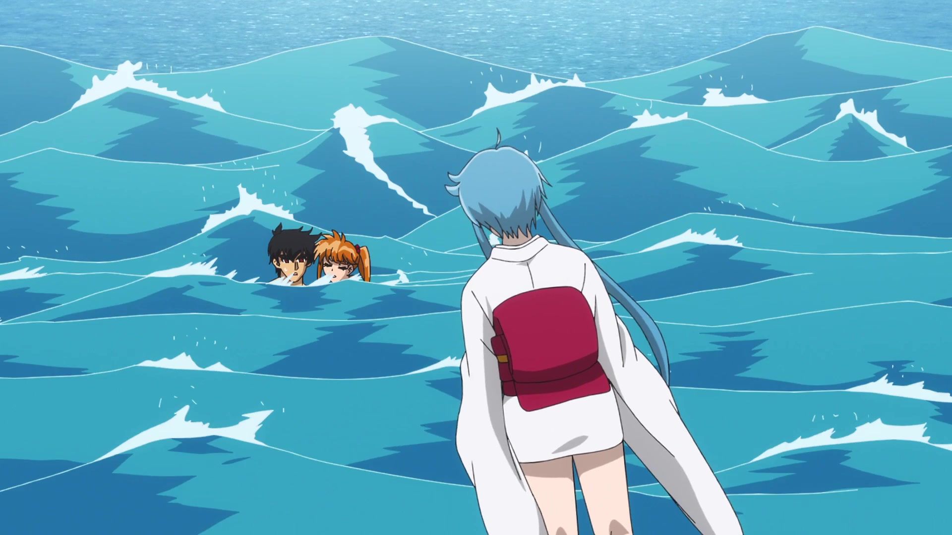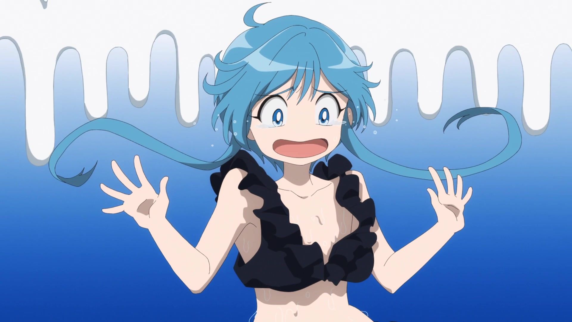 …Fantastic, the fanservice snow girl again. For a beach episode, so extra fanservice on top. I don’t expect Shakespeare from this show, but it’s not comparing well lately even to the pure fanservice schlock of the slave licking and petting show. Bikinis for kids and feeding her iced coffee makes her tan and busty. Could’ve at least dragged along the furry dude and slapped him in a speedo. If we’re going to be trashy and dumb, let’s go whole hog.