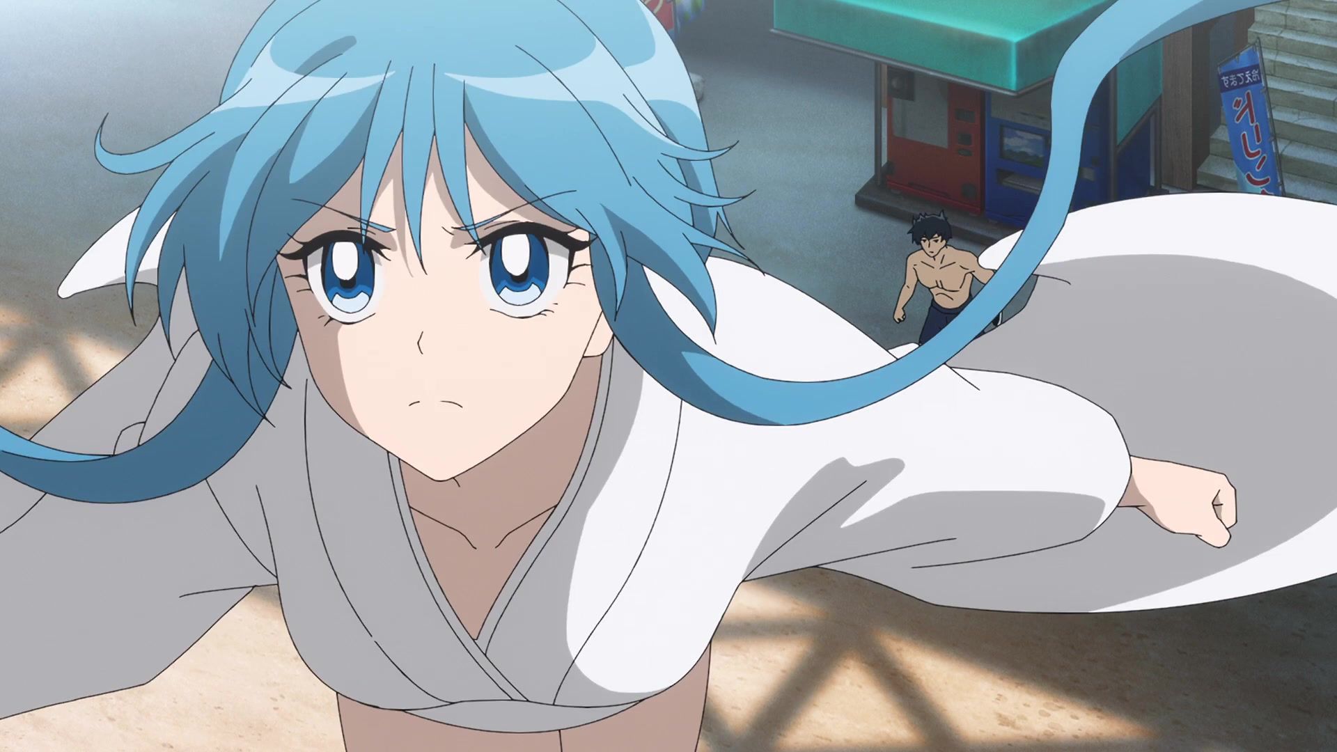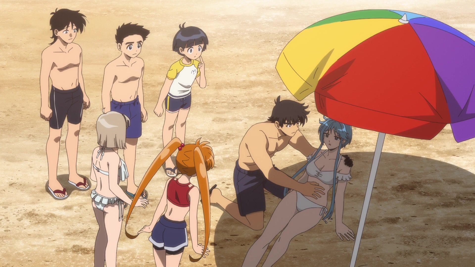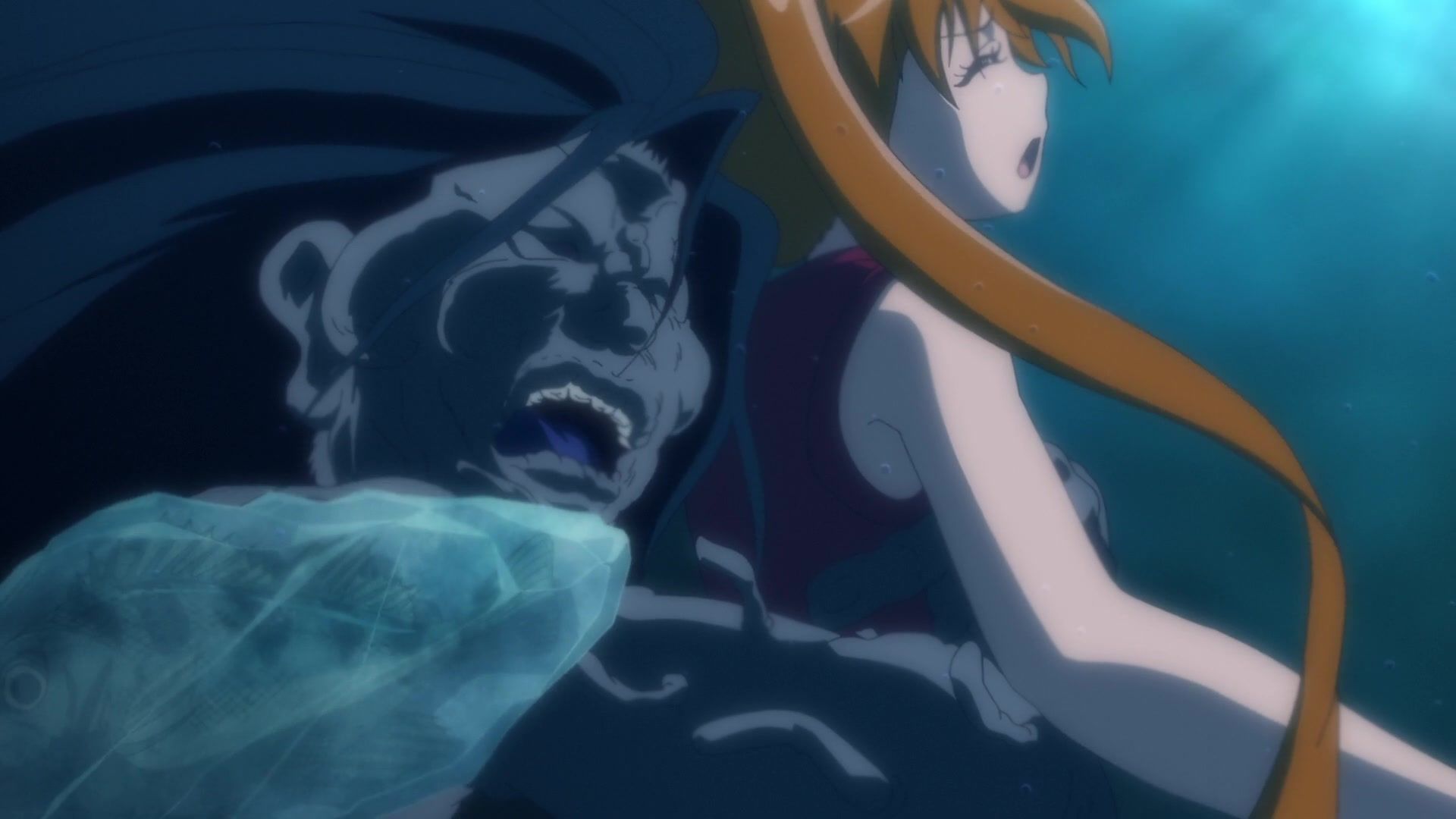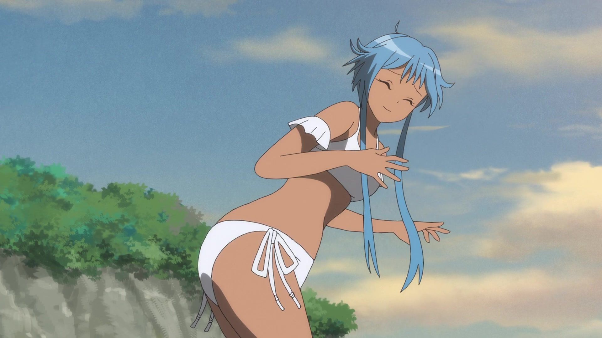 …Fantastic, the fanservice snow girl again. For a beach episode, so extra fanservice on top. I don’t expect Shakespeare from this show, but it’s not comparing well lately even to the pure fanservice schlock of the slave licking and petting show. Bikinis for kids and feeding her iced coffee makes her tan and busty. Could’ve at least dragged along the furry dude and slapped him in a speedo. If we’re going to be trashy and dumb, let’s go whole hog.