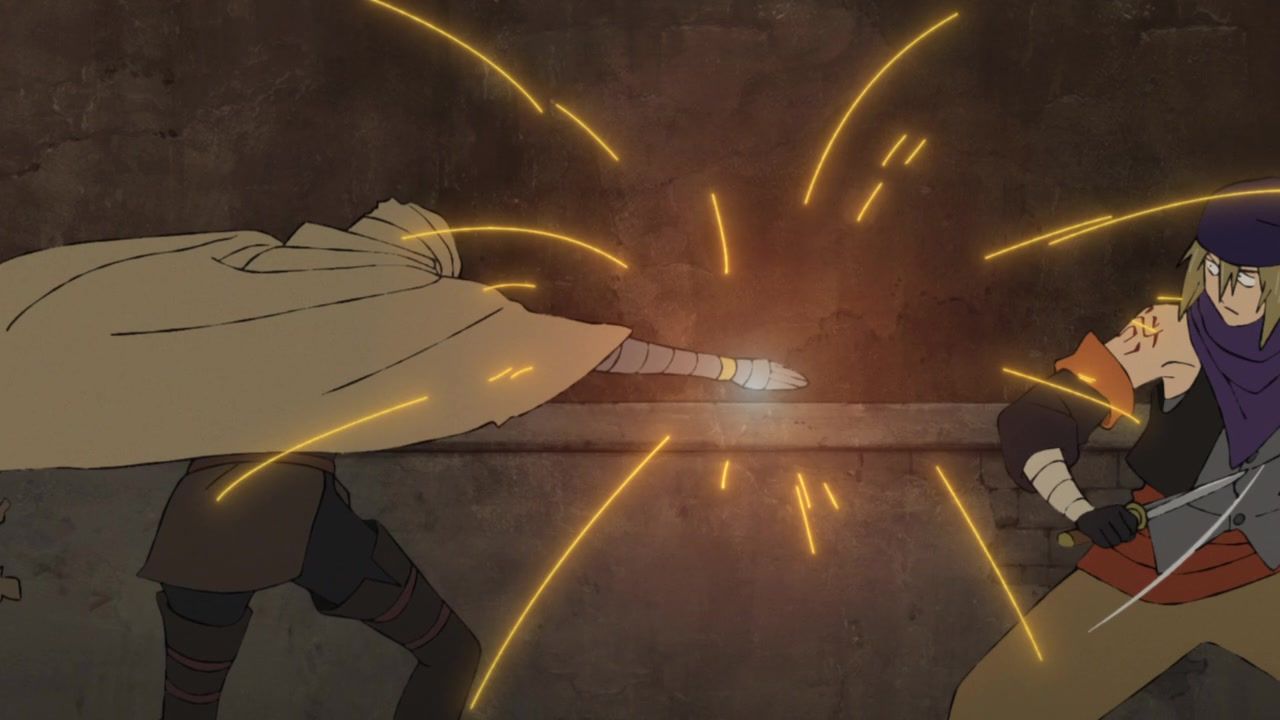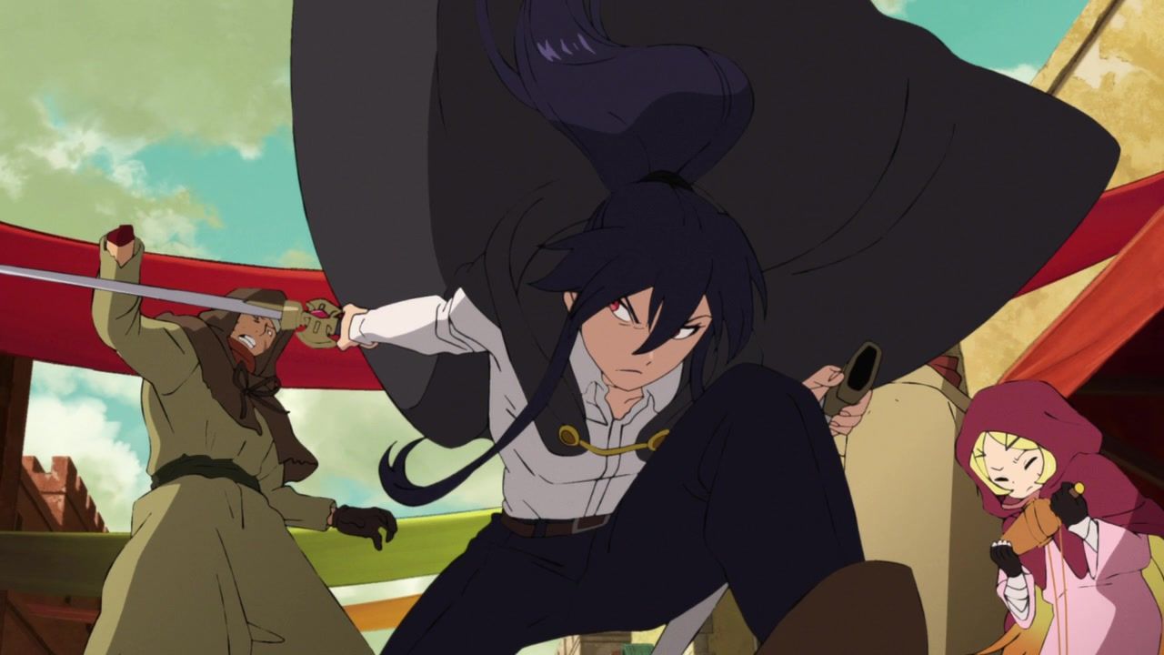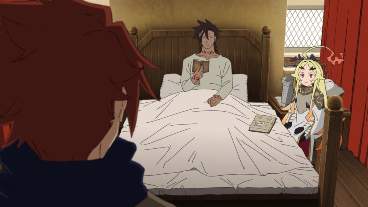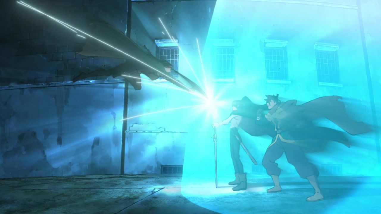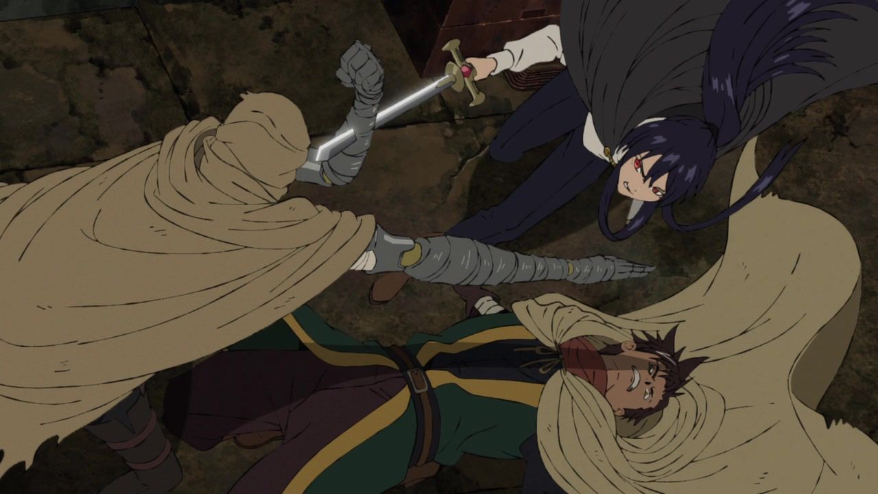 Thankfully, at least once the stabbings started, they didn’t stop, and a pair of new antagonists managed to make their way into the introductions as well. It did have the funny thing going where the important baddies had ten times the amount of detail into their art and animation. Not sure I can say the same about the writing. They’re chatty, to say the least, which makes all the times they say “stop talking so much” all the more irritating. It was also a little hard to tell what was meant to be stylized action and what was intended to be supernatural, because the dude has elastic arms, warps his body, etc, but it’s his resistance to fire and Teoritta’s spidey sense that are their supposed only clues that he might be a monster-dude. At least the angry lady could be explained by only a goofy weapon, also of a zillion swords.
