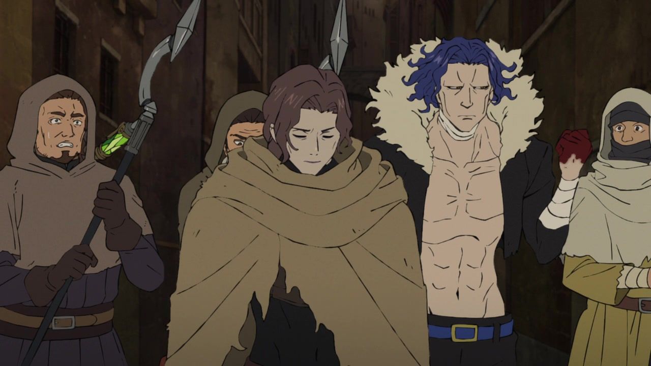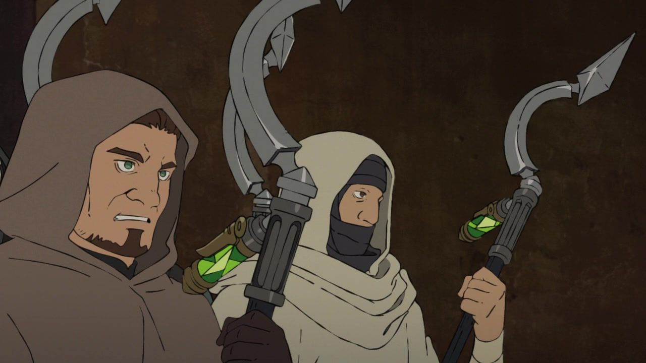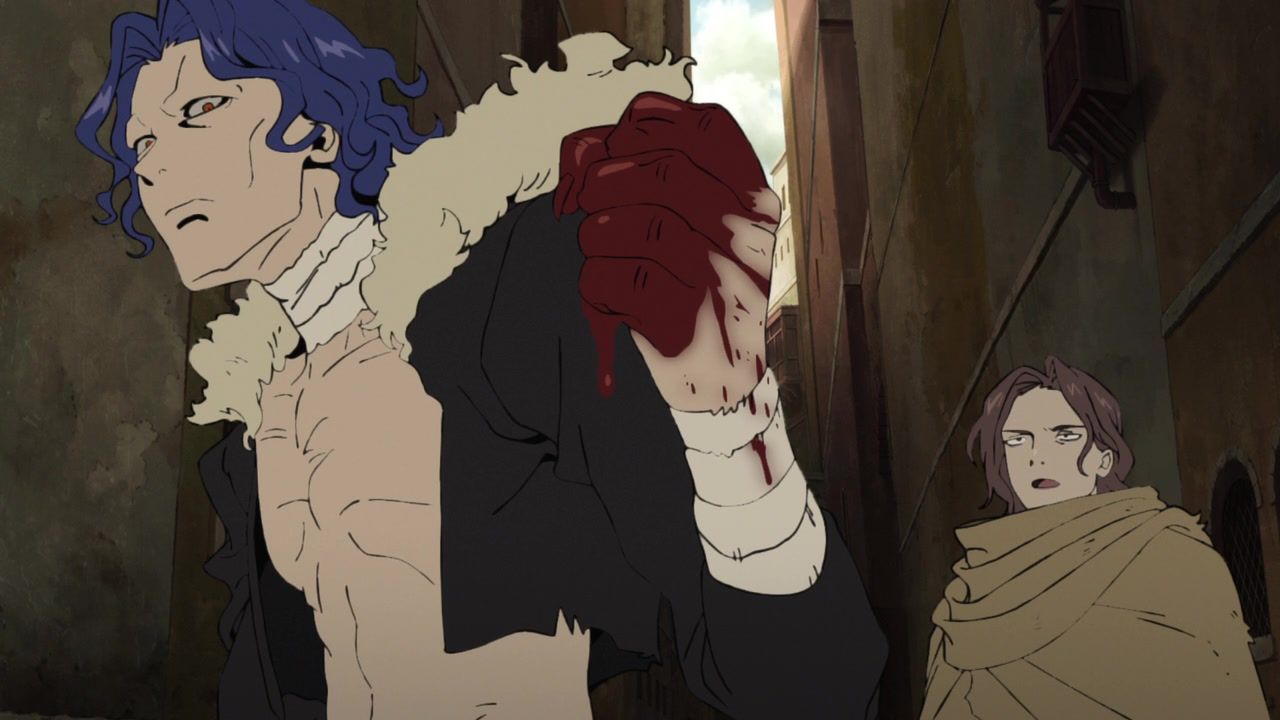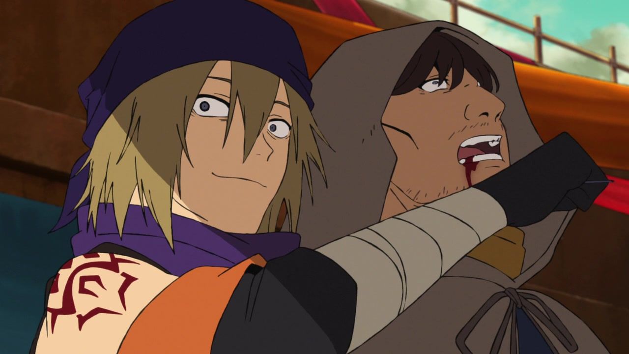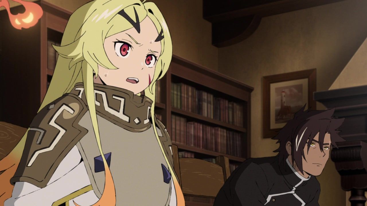 Thankfully, at least once the stabbings started, they didn’t stop, and a pair of new antagonists managed to make their way into the introductions as well. It did have the funny thing going where the important baddies had ten times the amount of detail into their art and animation. Not sure I can say the same about the writing. They’re chatty, to say the least, which makes all the times they say “stop talking so much” all the more irritating. It was also a little hard to tell what was meant to be stylized action and what was intended to be supernatural, because the dude has elastic arms, warps his body, etc, but it’s his resistance to fire and Teoritta’s spidey sense that are their supposed only clues that he might be a monster-dude. At least the angry lady could be explained by only a goofy weapon, also of a zillion swords.