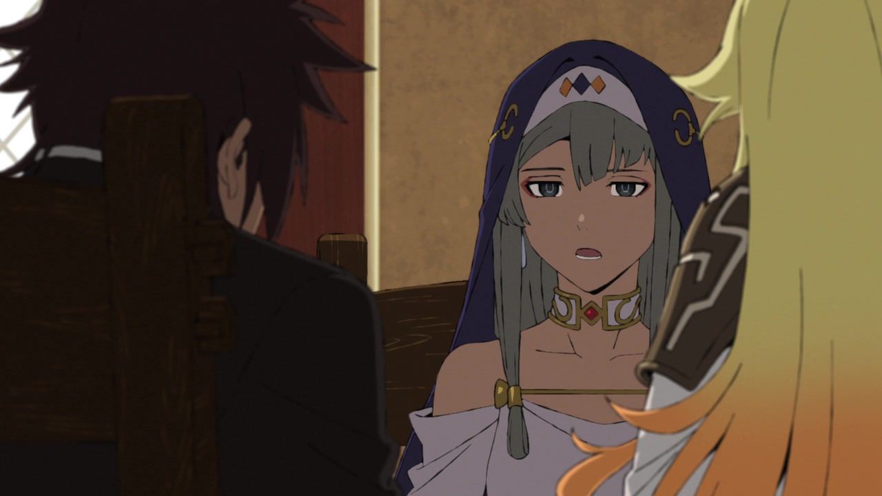And here it was looking like the entire episode was going to be spent in meetings. With his extended harem. Still, it was entirely setup. We get the new mission, bodyguarding and bait, a quickie tour through a few extra members of his harem, a deadpan nun and a jealous dragon rider with a weirdly deep voice, and then it’s time to go on a date with the primary harem. It was… not an enthralling first sixteen minutes of the episode.