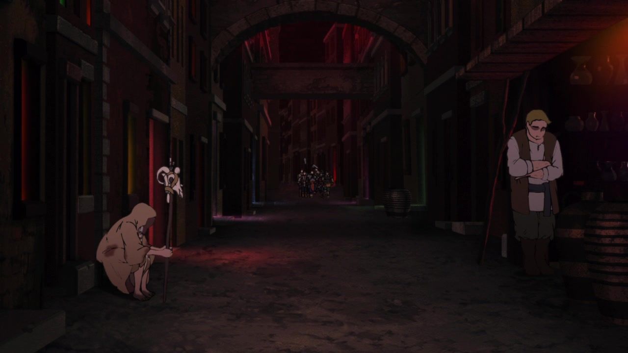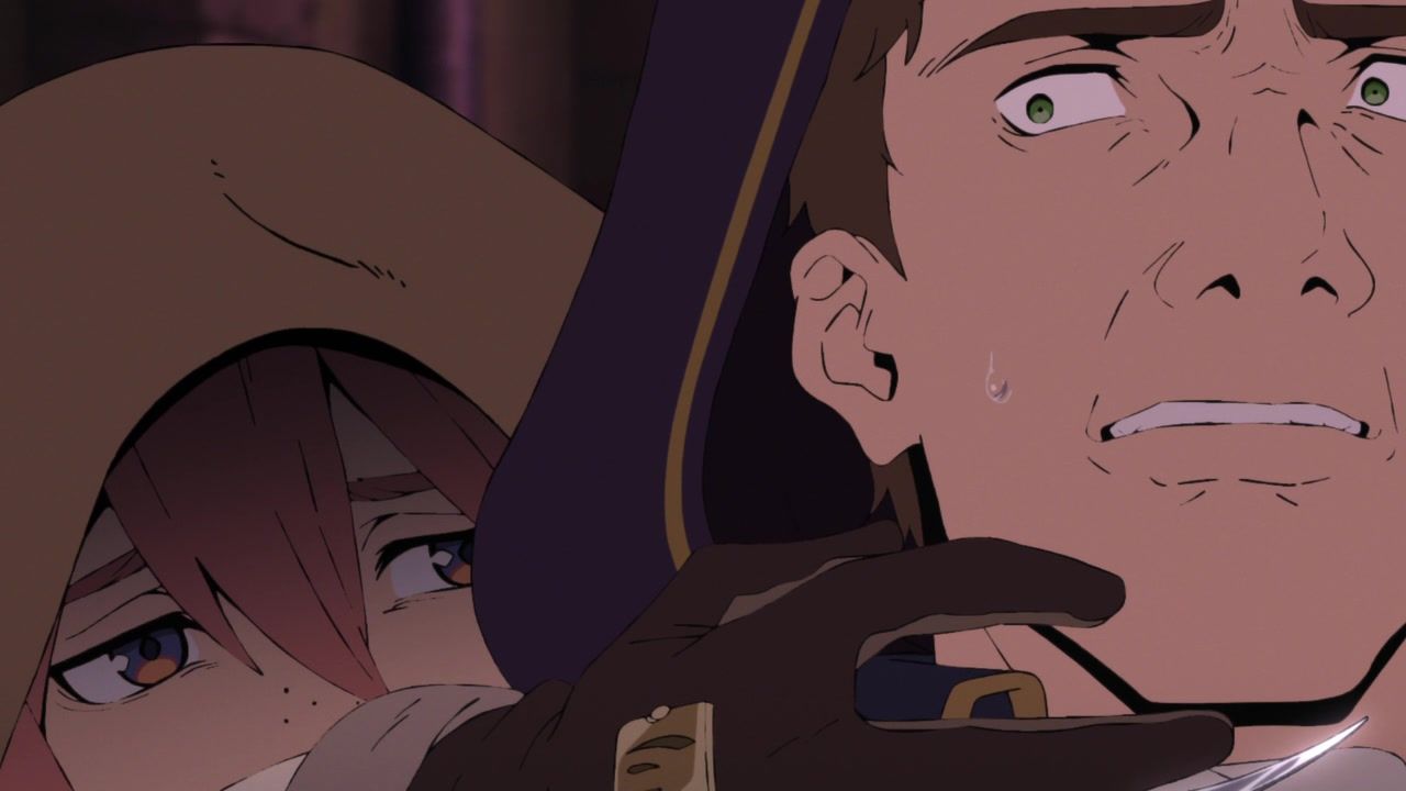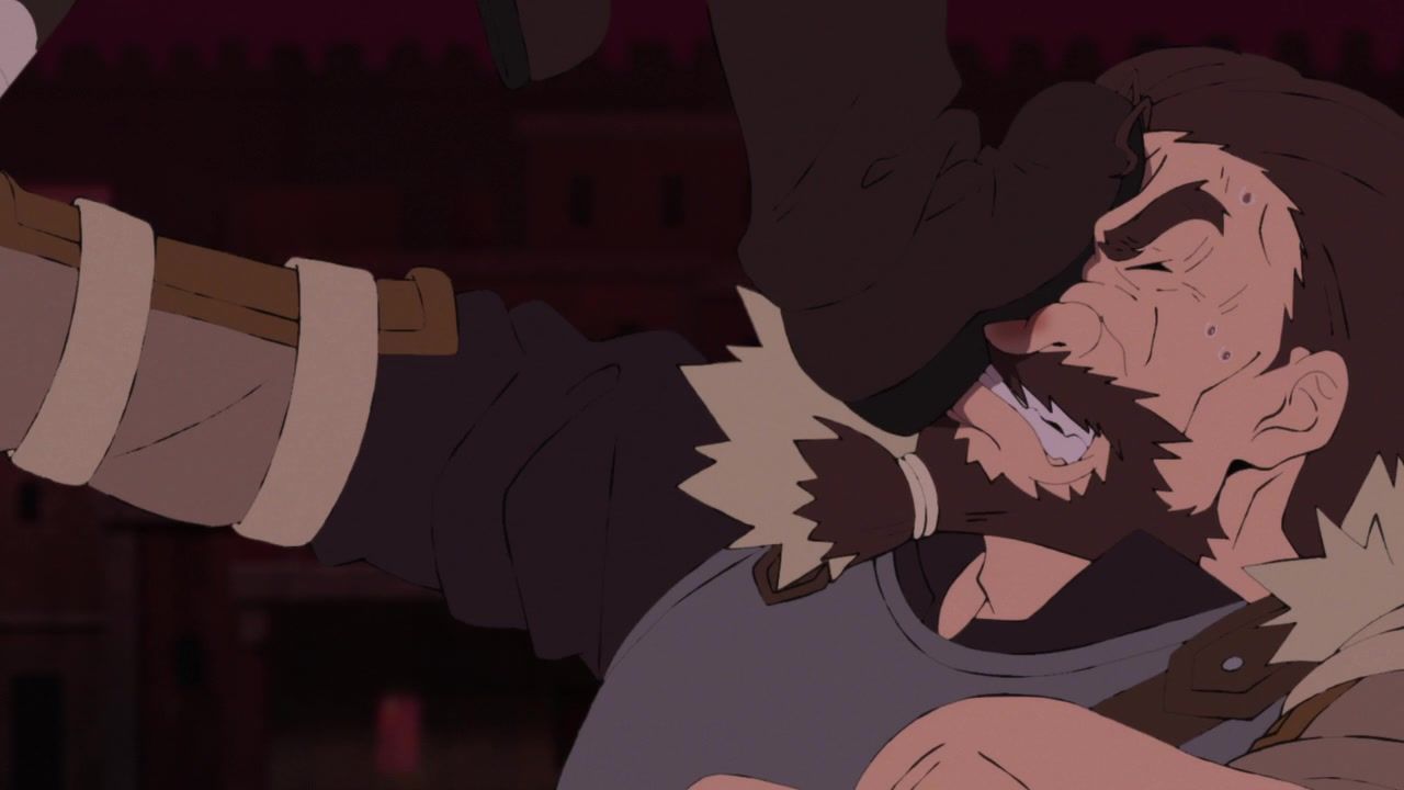 Probably the strongest episode of the show to date, though I did find it funny that they blew up the local hero’s guild and set about murdering everyone who showed up to stop the mad bomber obliterating the city around them, except for the assassins who were there specifically to kill them from the start. They even went out of their way to show the local merchants complaining about how all their possessions were being blown up by the indiscriminate carpet bombing Xylo was doing in a residential district. The need for spectacle and gore is quite at odds with them being the heros here, even gruff not-really antiheroes.