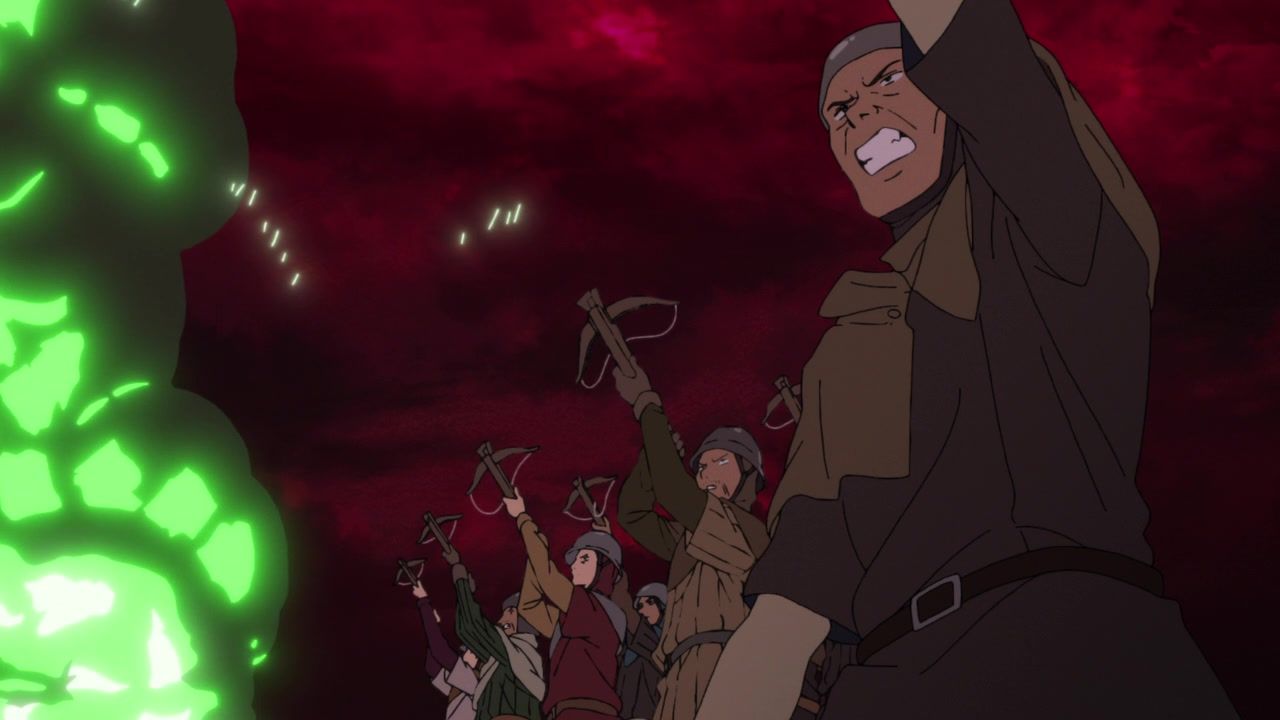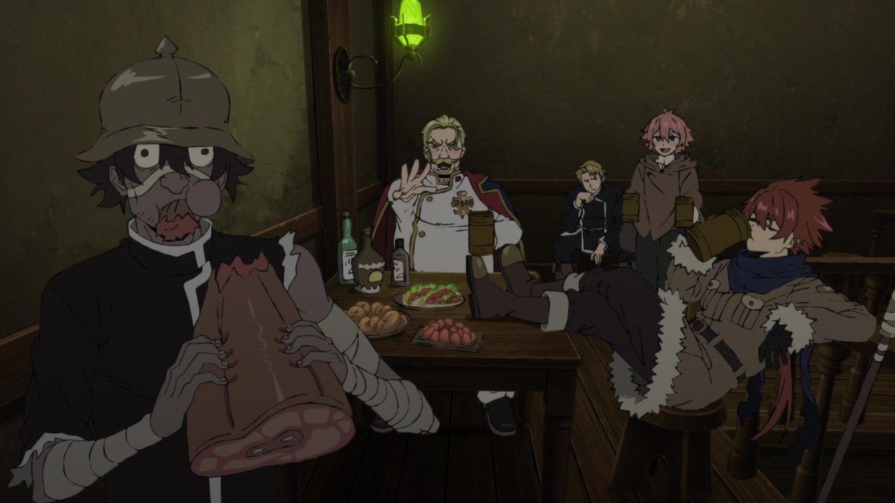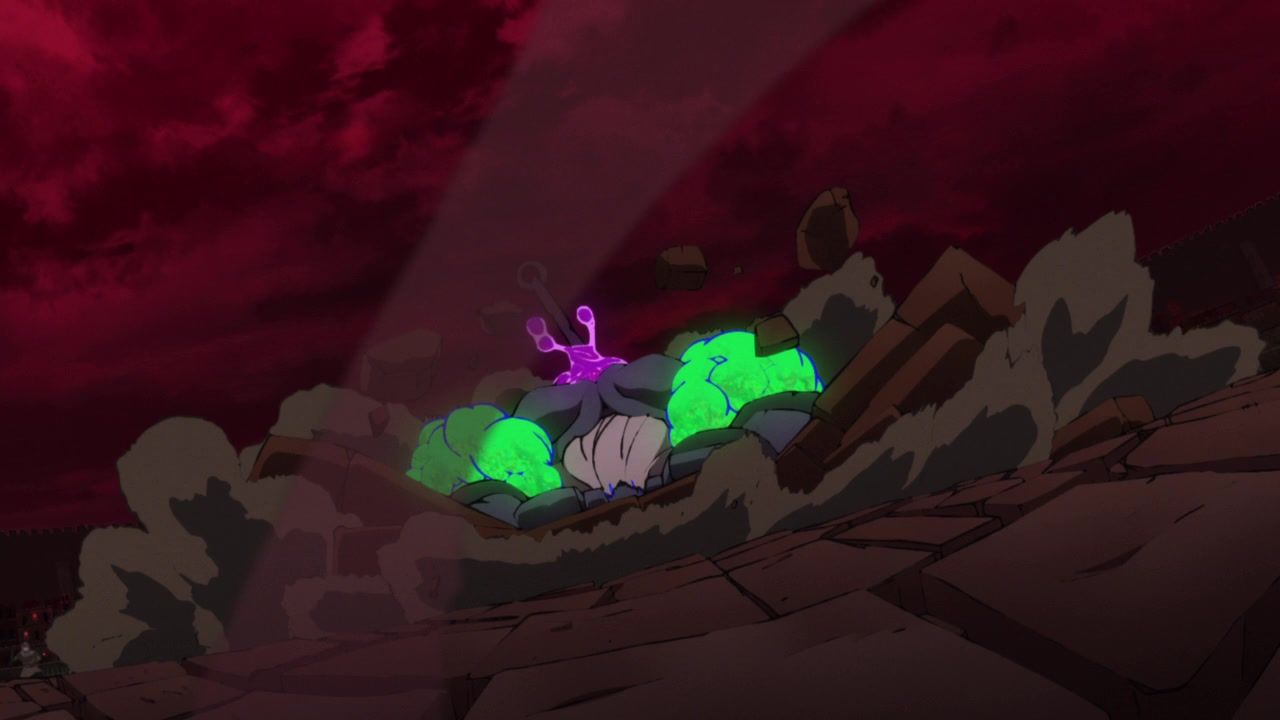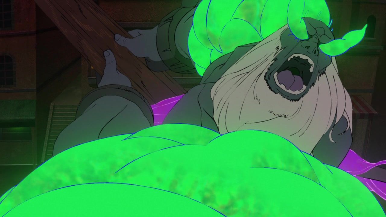 But there was a butt-ton of spectacle and action this week, even if it’s still suffering a bit from not having any real antagonists or the protagonists ever actually having to struggle. It’s nice that they seem to have sorted out the budget too. Virtually none of those awful random stills that scream “finish animating this scene later” which have plagued previous episodes. Flowed well too. No flashbacks or long asides on irrelevant nonsense. The dude getting merc’d as soon as he escaped was entirely predictable, though I’m not sure why the monster even pretended or needed an excuse at all since the pile of corpses was literally five feet away, but hey, I guess it’s also is a big fan of theatrics.