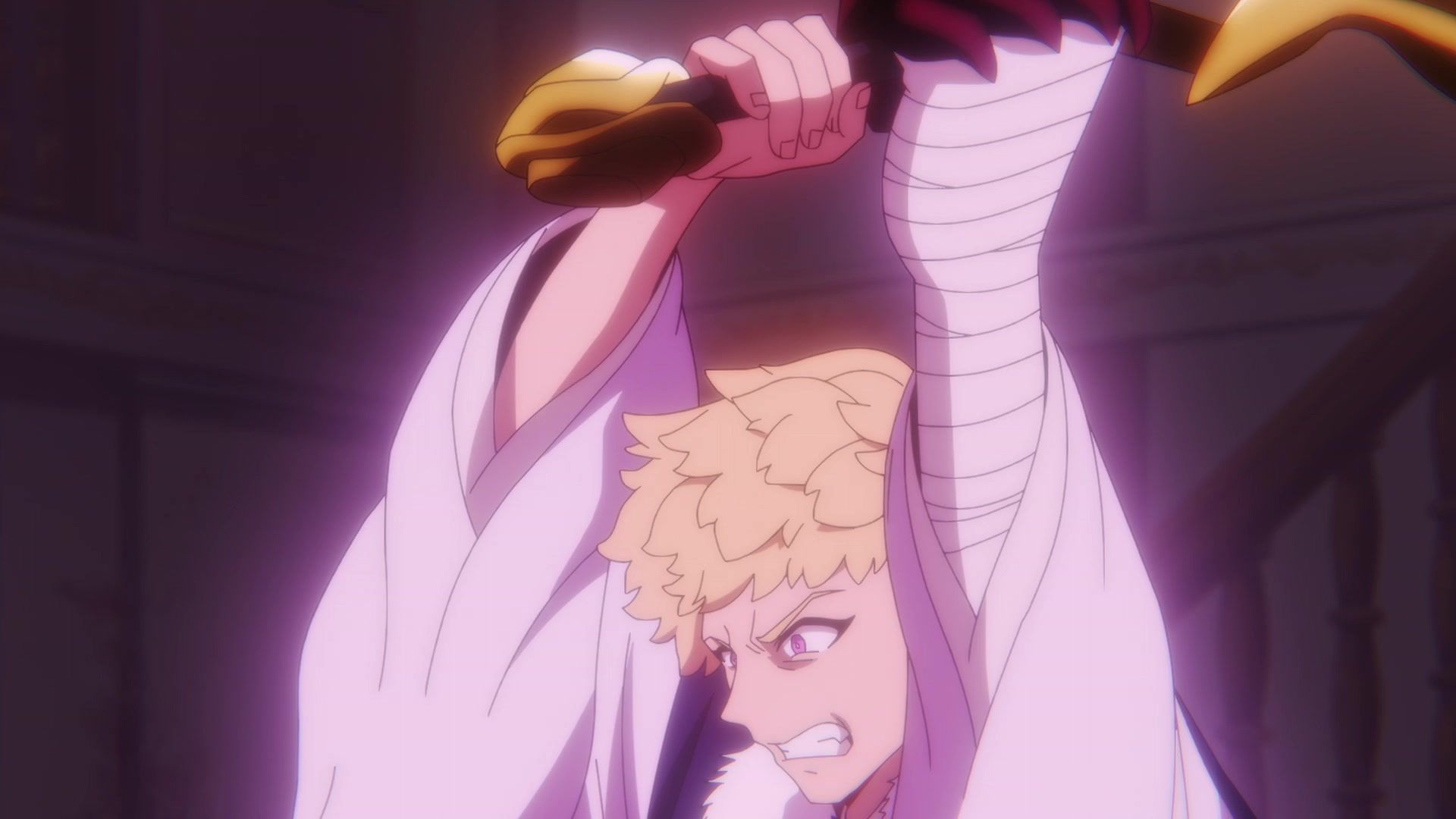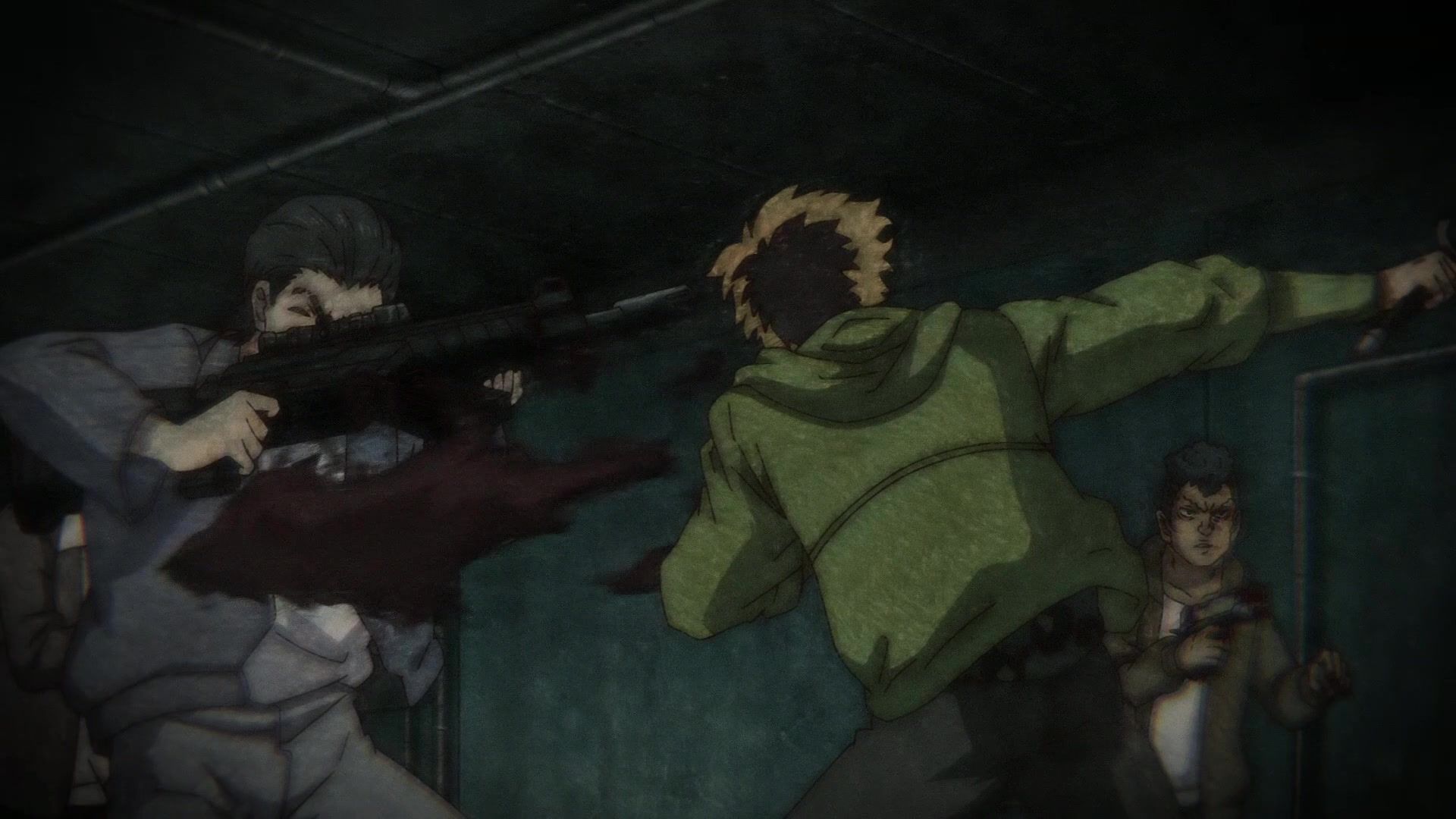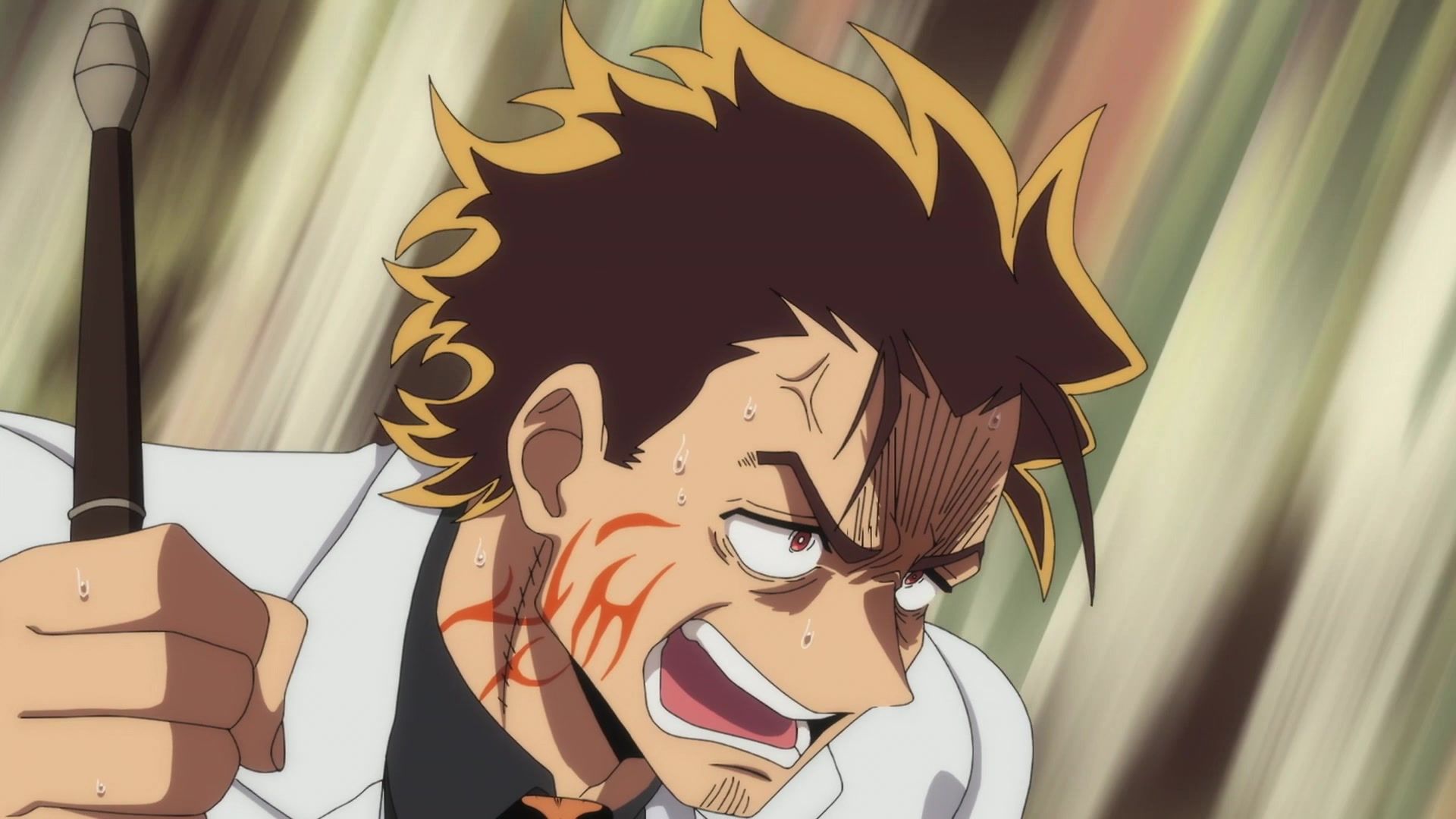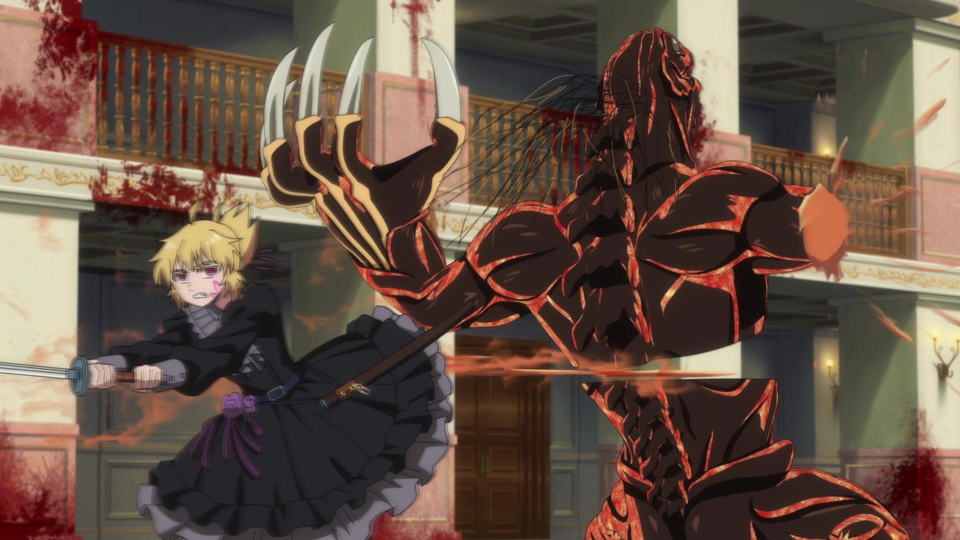 Ten minutes. Ten minutes in between Jogamine getting half her face gouged out and the fight with the rando that showed up to start. They spent ten minutes, standing there chatting, with the jank-ass CGI frogs trundling around in the background, getting sliced up by the other two girls. Can we pick up the pace ever so slightly? Do you understand how long ten minutes is? And this is with the ‘fights’ already getting time dilated by constant internal narrations to overexplain what’s going on while everything devolved into stills. Play as dramatic music as you want. It’s stills. Stills with a dude whose power is that he can see people’s levels.