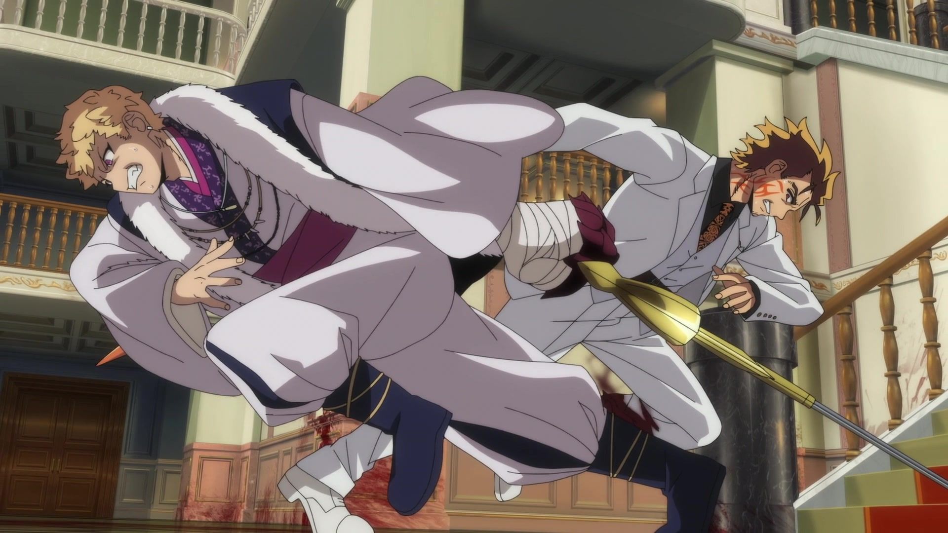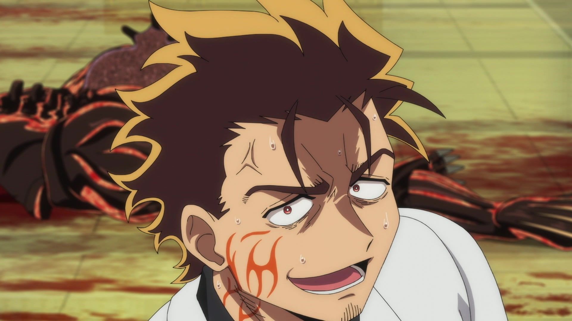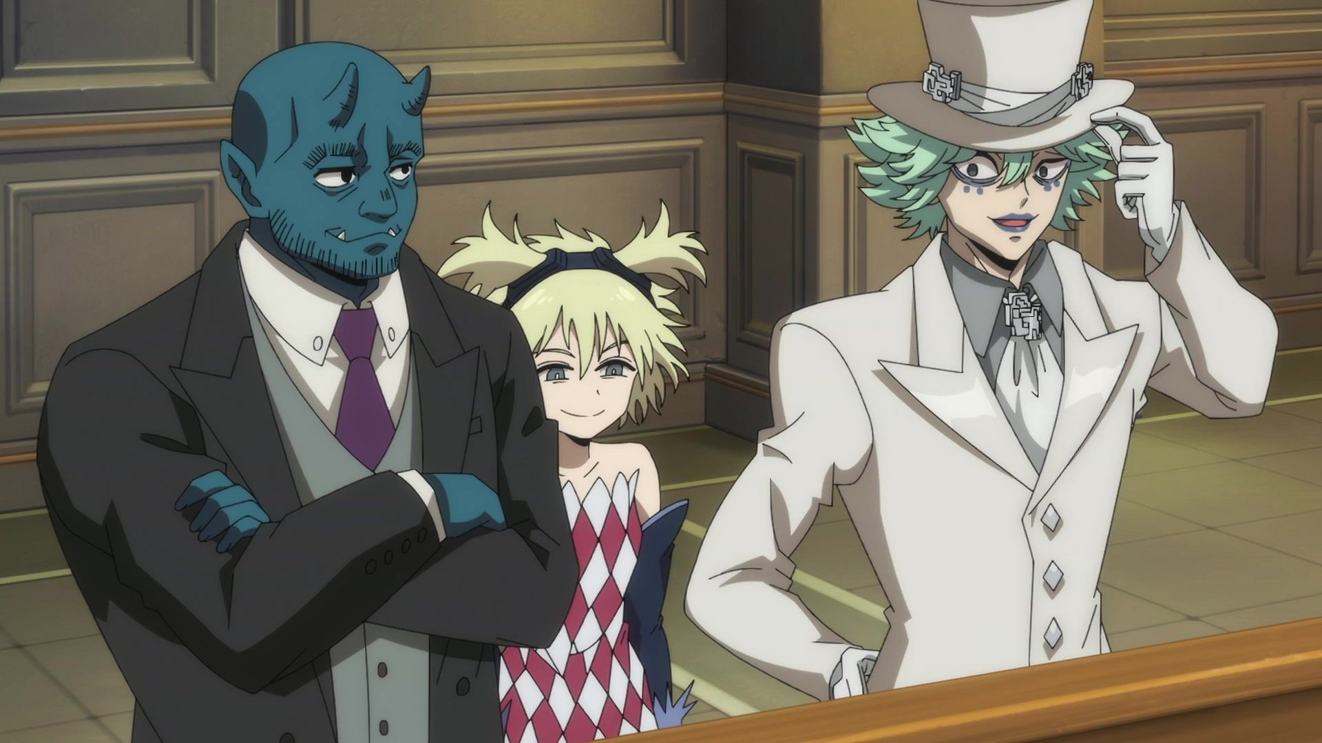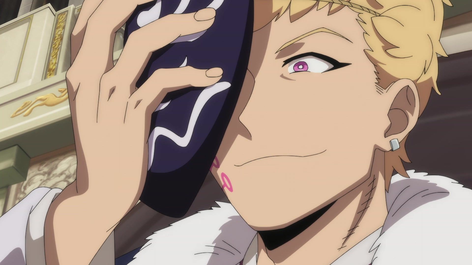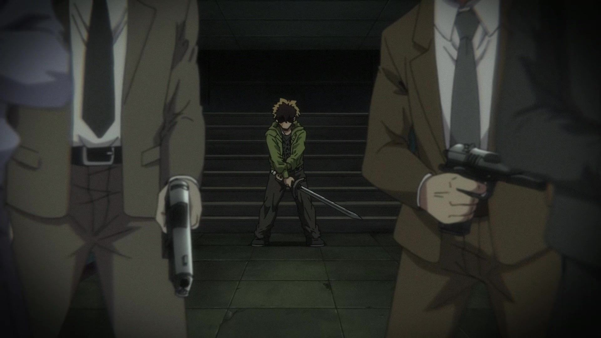 Ten minutes. Ten minutes in between Jogamine getting half her face gouged out and the fight with the rando that showed up to start. They spent ten minutes, standing there chatting, with the jank-ass CGI frogs trundling around in the background, getting sliced up by the other two girls. Can we pick up the pace ever so slightly? Do you understand how long ten minutes is? And this is with the ‘fights’ already getting time dilated by constant internal narrations to overexplain what’s going on while everything devolved into stills. Play as dramatic music as you want. It’s stills. Stills with a dude whose power is that he can see people’s levels.