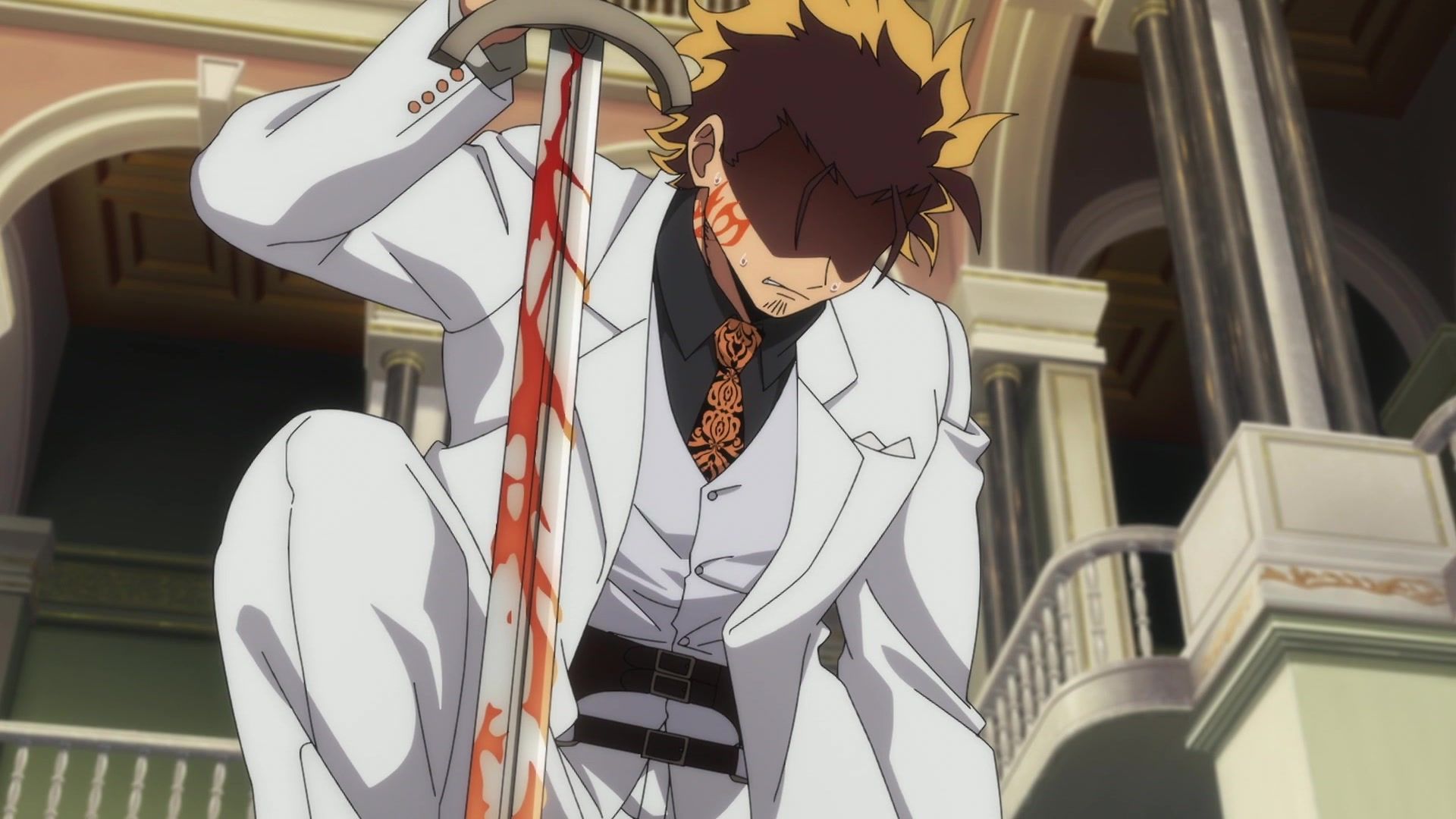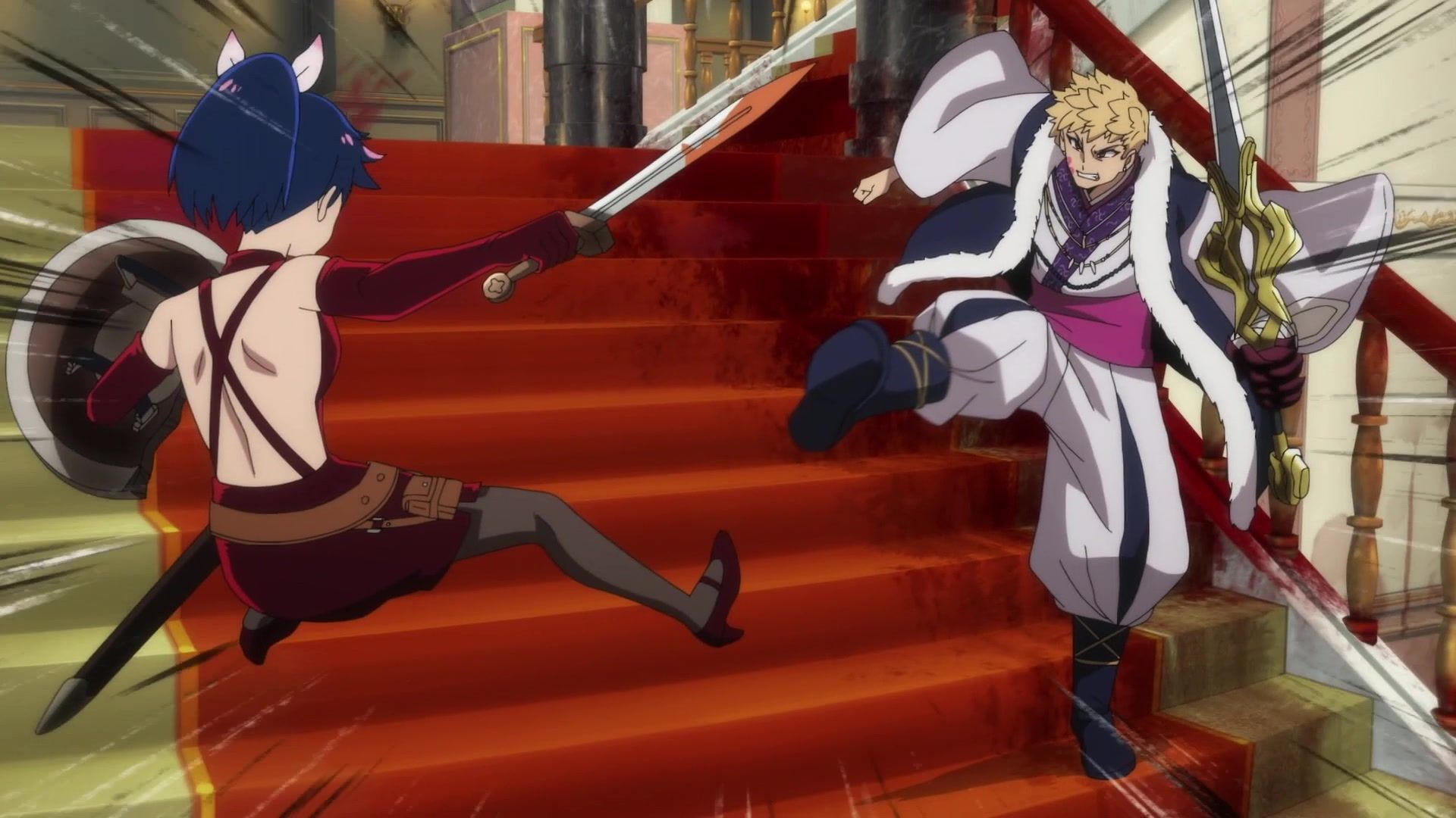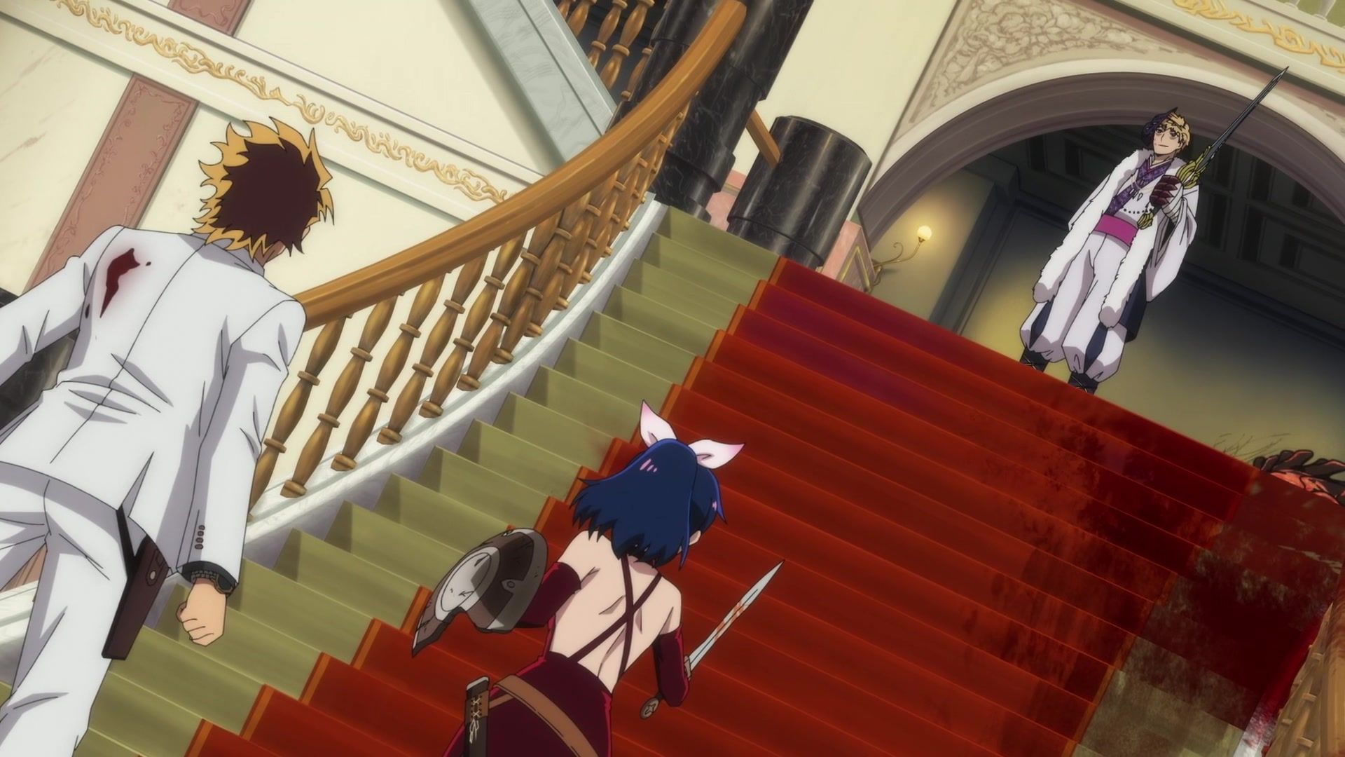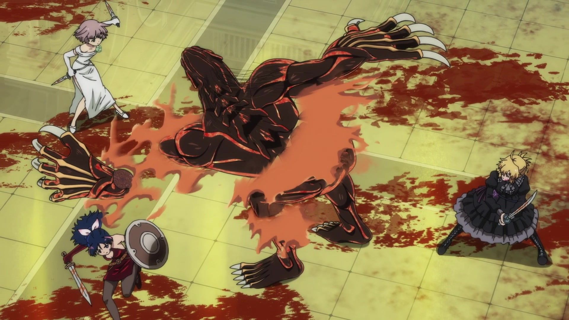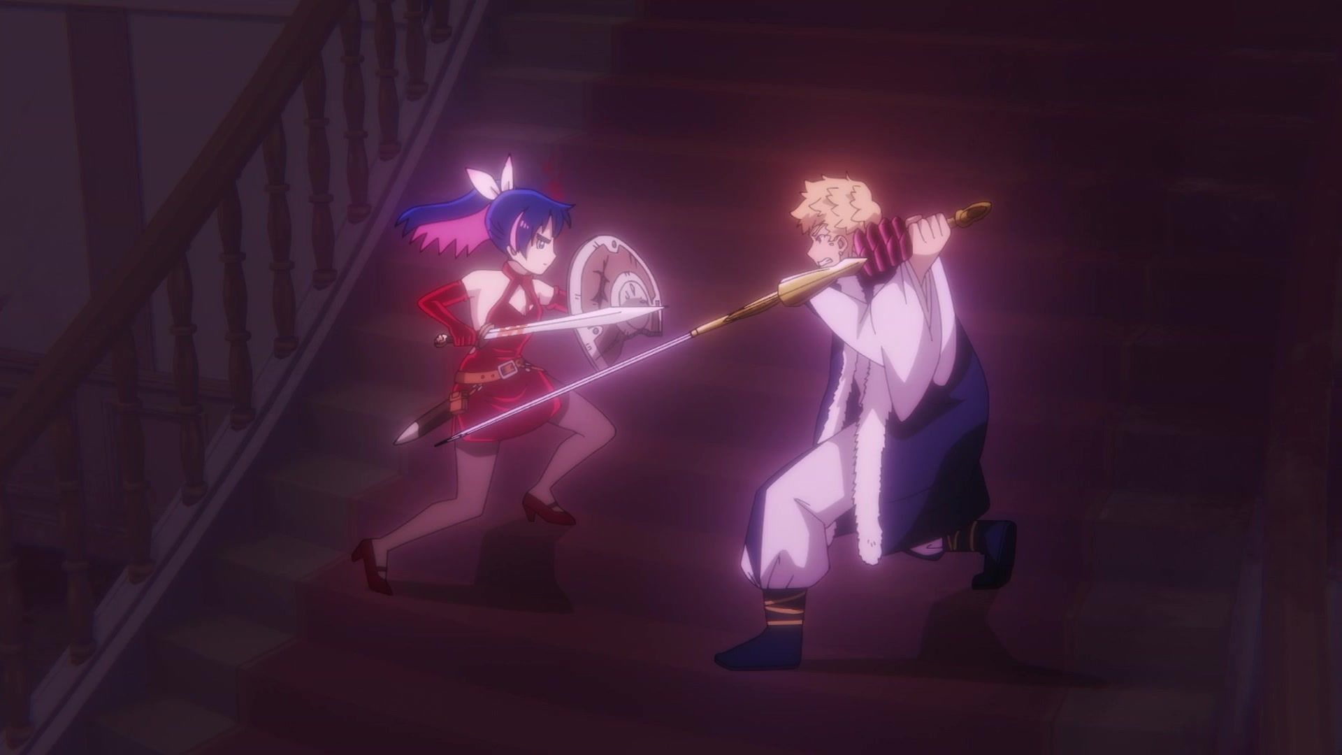 All this leading up to… just sucker punching the guy with a knife? Dude sure went down unceremoniously for all the rambling. The ten goddamned minutes of rambling. And status screens. Goddamned status screens. He got bisected by… that one still? Come on. At least make it look slightly believable. You’re only drawing about two frames anyway. Everything here was so unfathomably dumb.