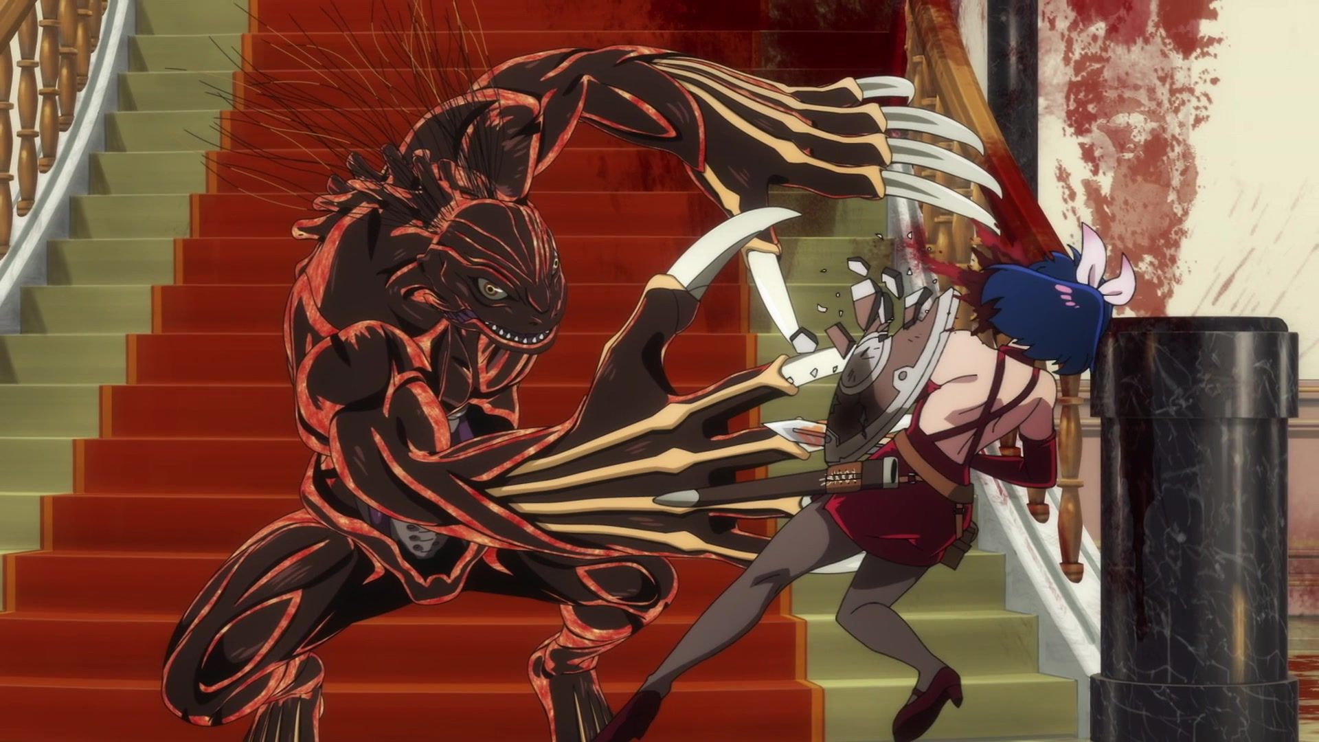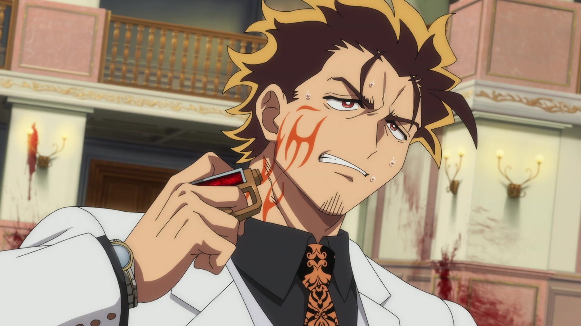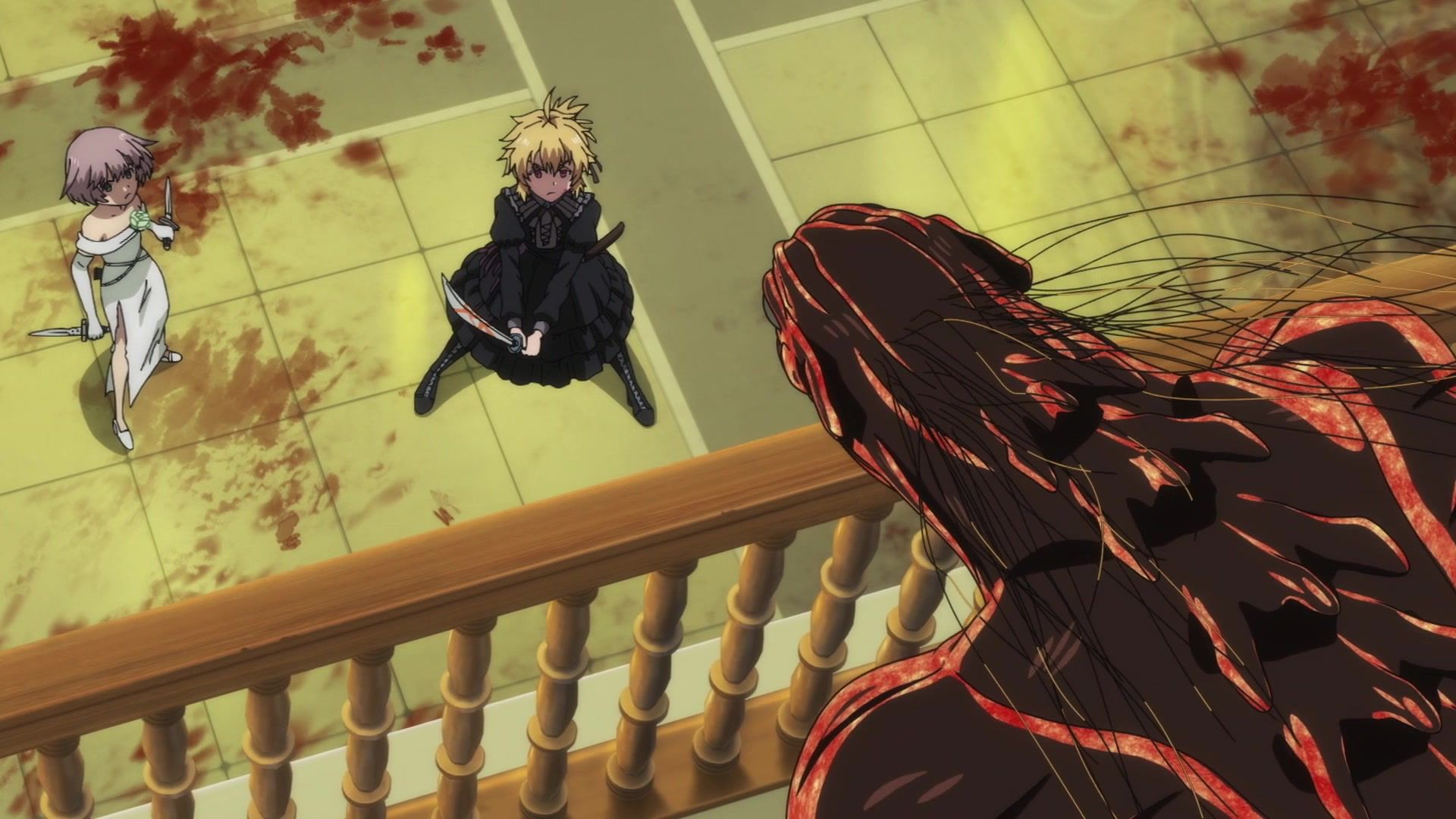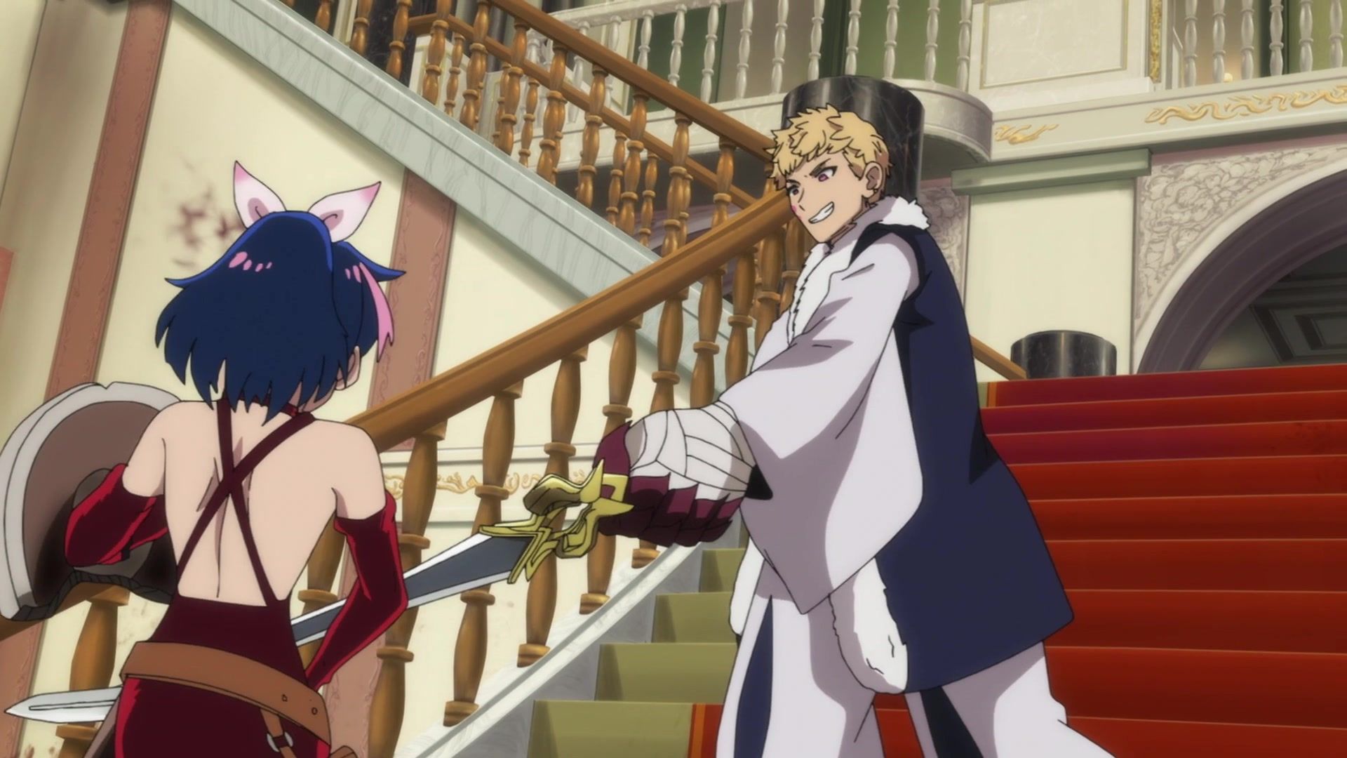 All this leading up to… just sucker punching the guy with a knife? Dude sure went down unceremoniously for all the rambling. The ten goddamned minutes of rambling. And status screens. Goddamned status screens. He got bisected by… that one still? Come on. At least make it look slightly believable. You’re only drawing about two frames anyway. Everything here was so unfathomably dumb.