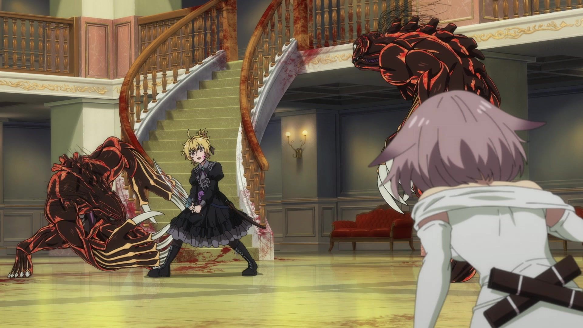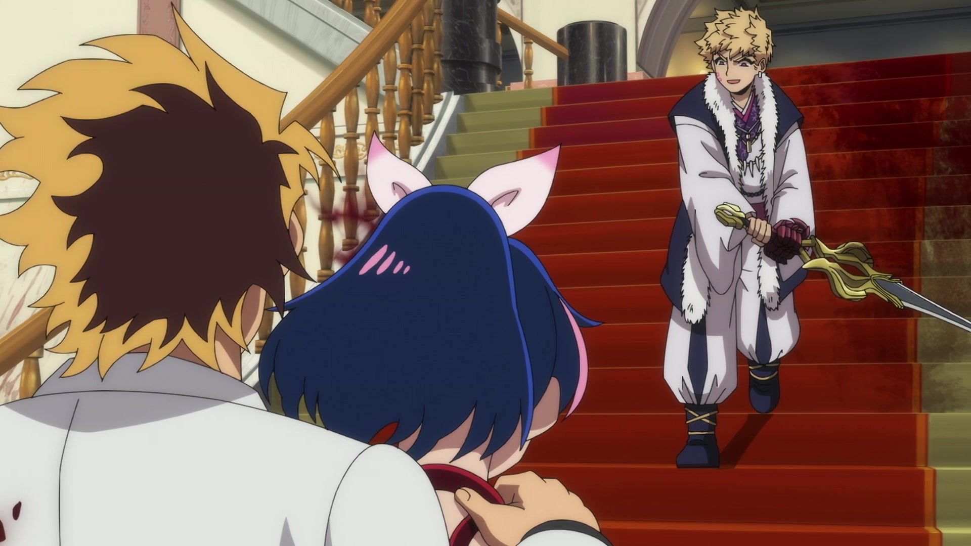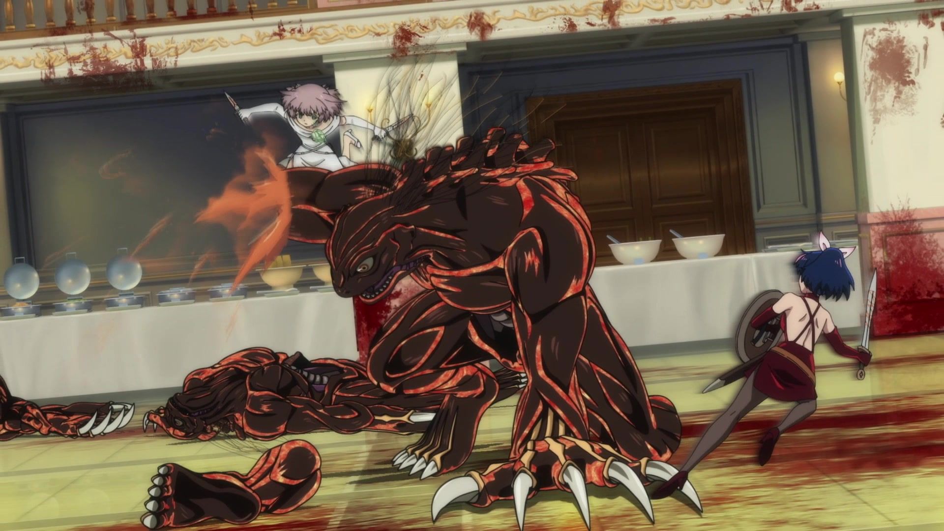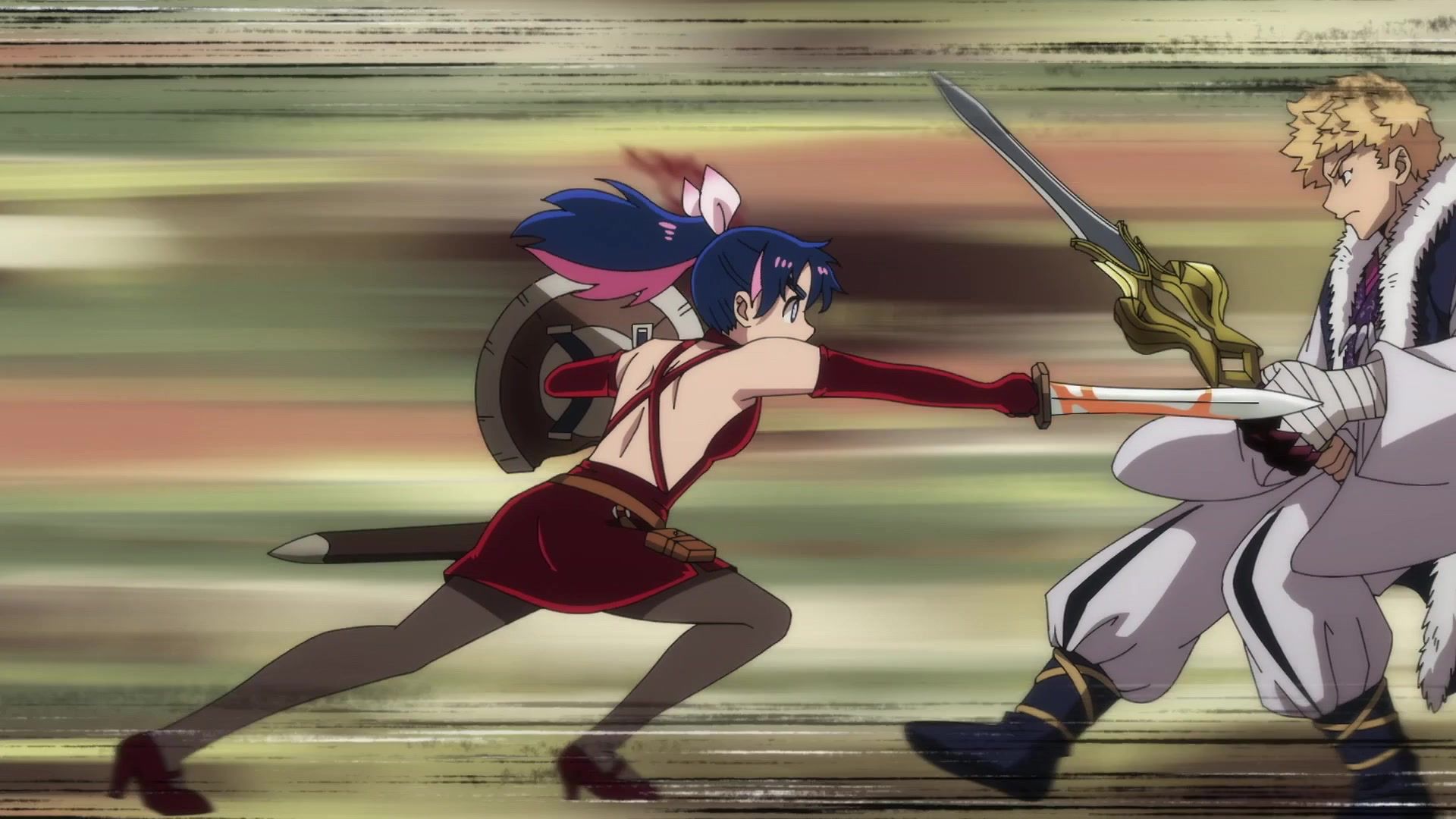 All this leading up to… just sucker punching the guy with a knife? Dude sure went down unceremoniously for all the rambling. The ten goddamned minutes of rambling. And status screens. Goddamned status screens. He got bisected by… that one still? Come on. At least make it look slightly believable. You’re only drawing about two frames anyway. Everything here was so unfathomably dumb.