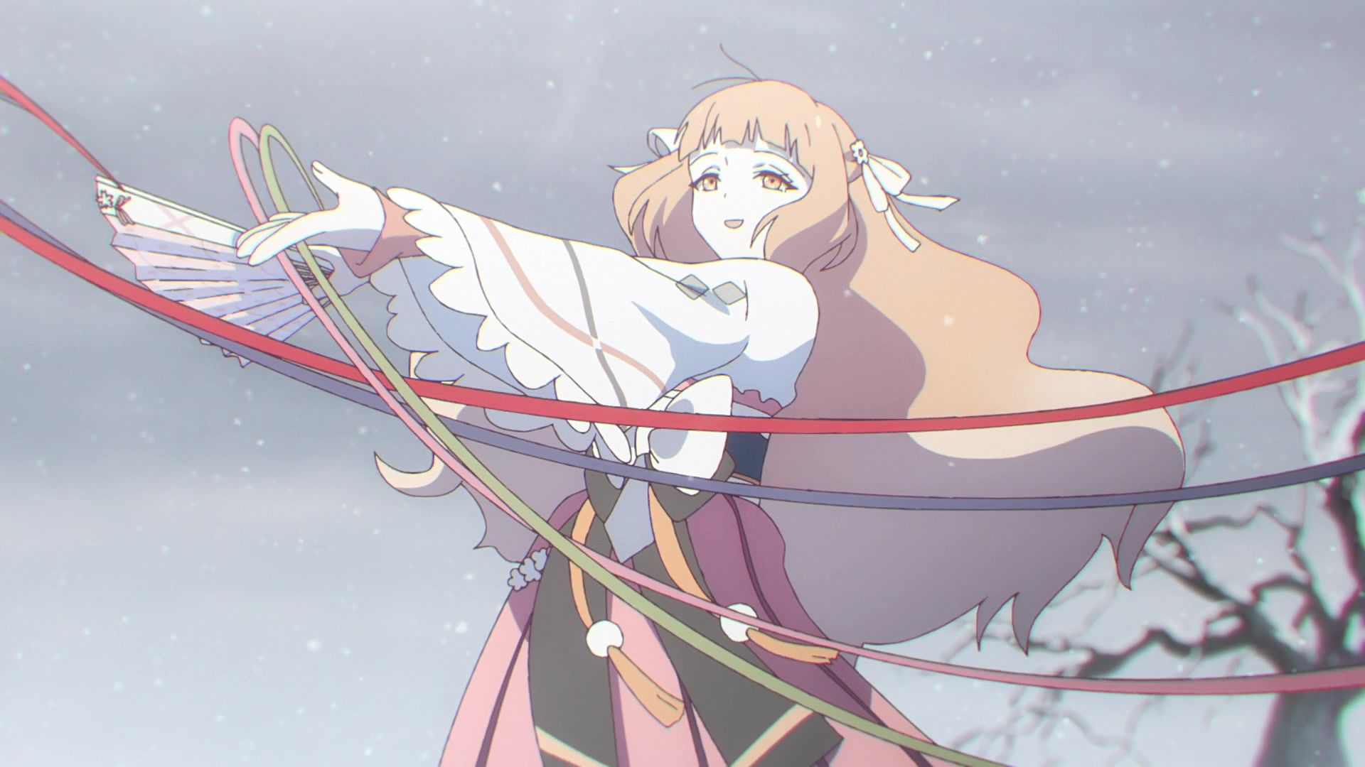 Except that Wit has far less talent, or perhaps chutzpah when it comes to emotional wringing, than KyoAni did, so there isn’t nearly as much bloom or dramatically blowing wind to highlight just how tragic and dramatic the sad girls in snow are. Plus, the main sad emotionally stunted girl speaks in a… halting and… staggered… sing-song… ca…dence… to extra extra EXTRA accentuate just how emotionally stunted she is which was slowly grating on my nerves through the entire damn episode. But also, the entire episode was them going to a random spot in the woods to stare at a grave and feel emotions around some random kid that happened to be there. Not the most eventful nor attention grabbing of hooks. Stuff happened. What stuff? Off-screen. Don’t worry about it. Just be emotional. With this faceless blob. Even for sad girls in snow, there have been far better pitches.