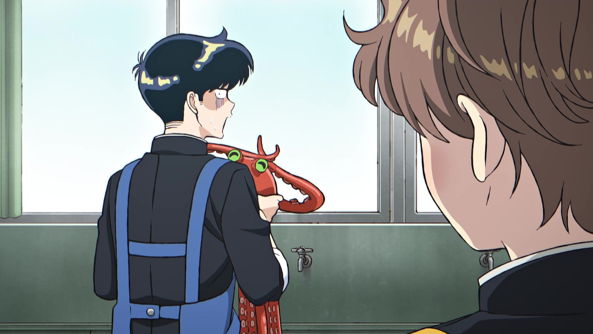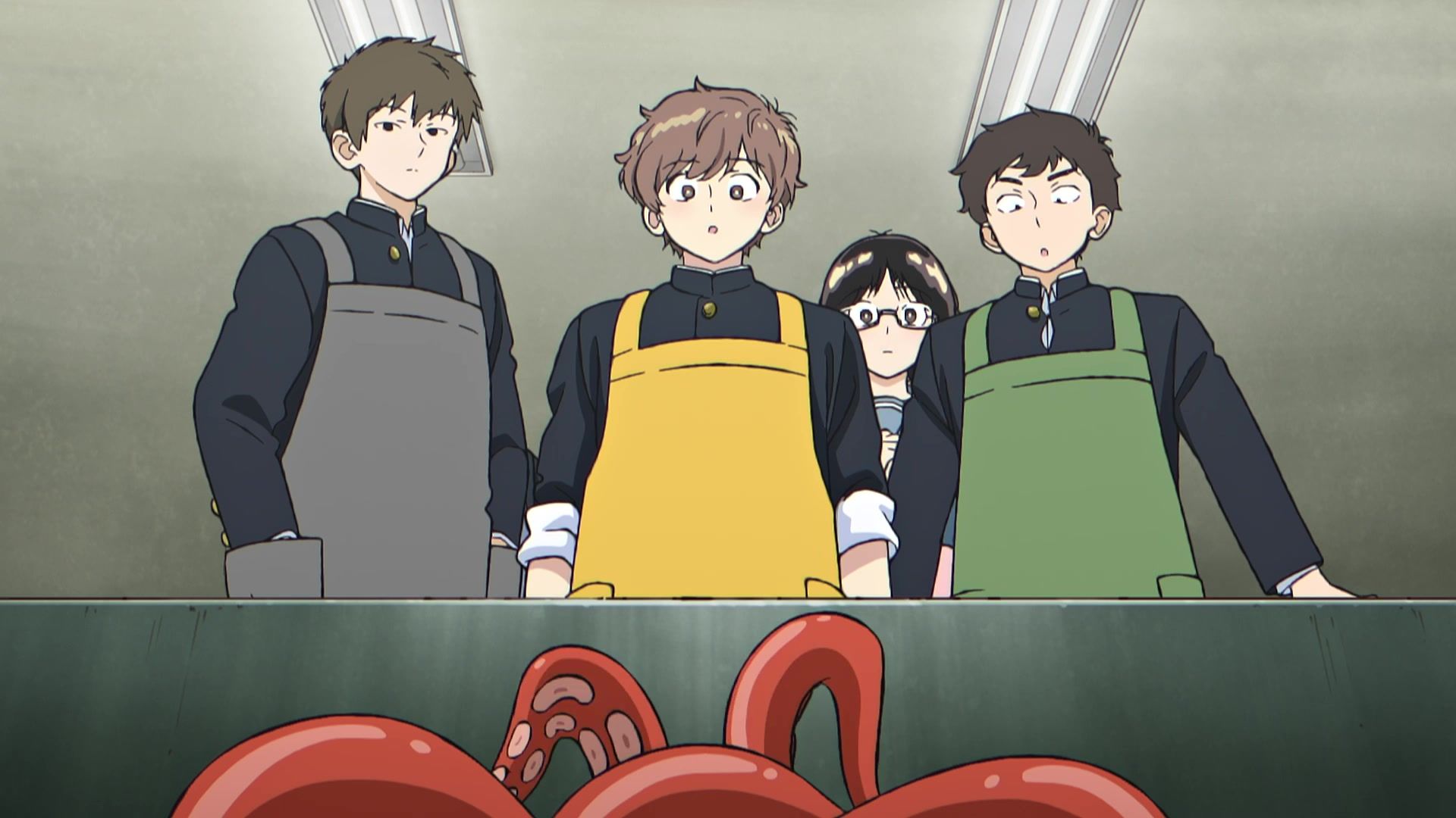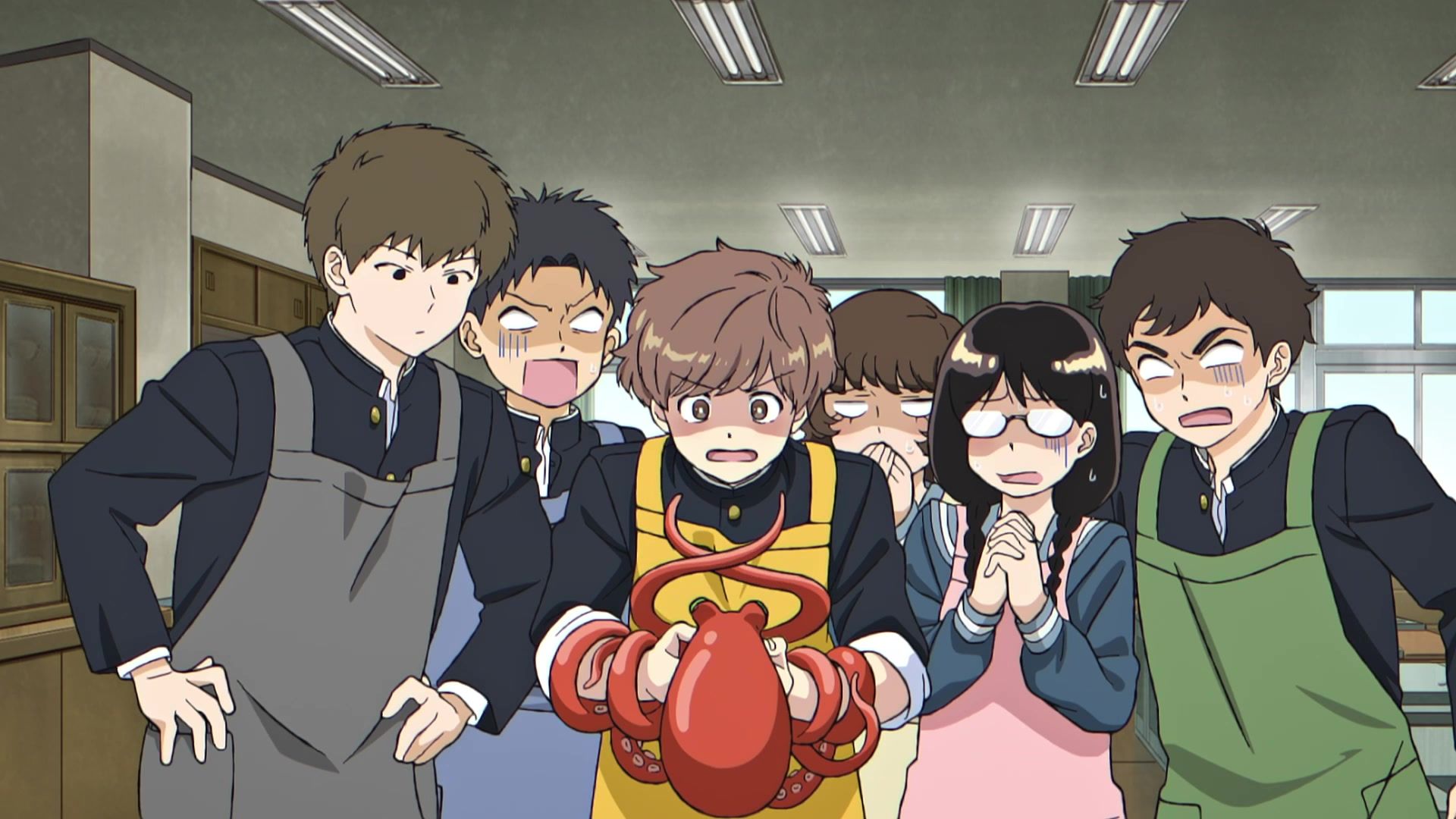 But that’s where the plaudits end. Not that it was particularly offensive or anything, but maybe that’s just the previous show traumatizing me talking. Just annoying generic ‘humor.’ Annoying because like most comedy these days, the joke was that the other kid looked at him, and he internally screamed “AAAAAAAAAAAAAAHHHHHHH!!!!!” That first scream was the worst by far, lasting nearly five seconds, and even though the ones to follow were less obnoxious, the damage had already been done. So when he goes merely “AAAHH!” when it comes time to pick up something dropped, or “OOOH!!” when he says hi, the gaggy overreaction thermocline has already been breached and the damage is done. And as mentioned above, the pacing was less than snappy, so the long… loooong pauses in between screams kept them from being too irritating, but also made it easy to completely zone out. Honestly, wondering if they were indeed going to have the kid be tentacle raped by his lunch was the most exciting experience for me.