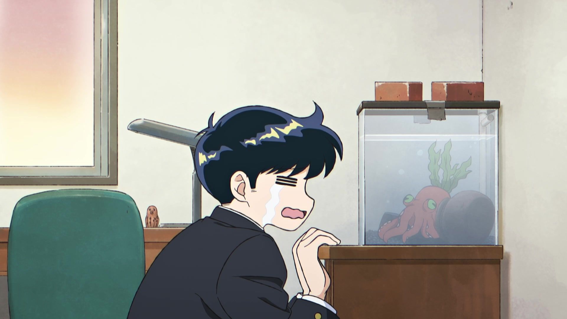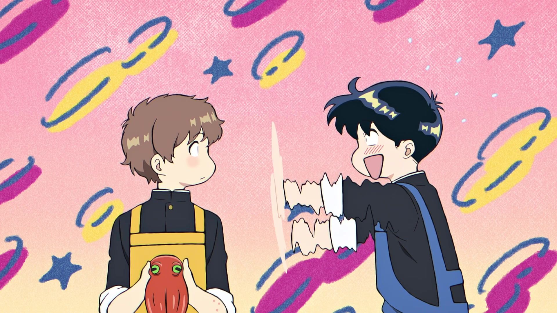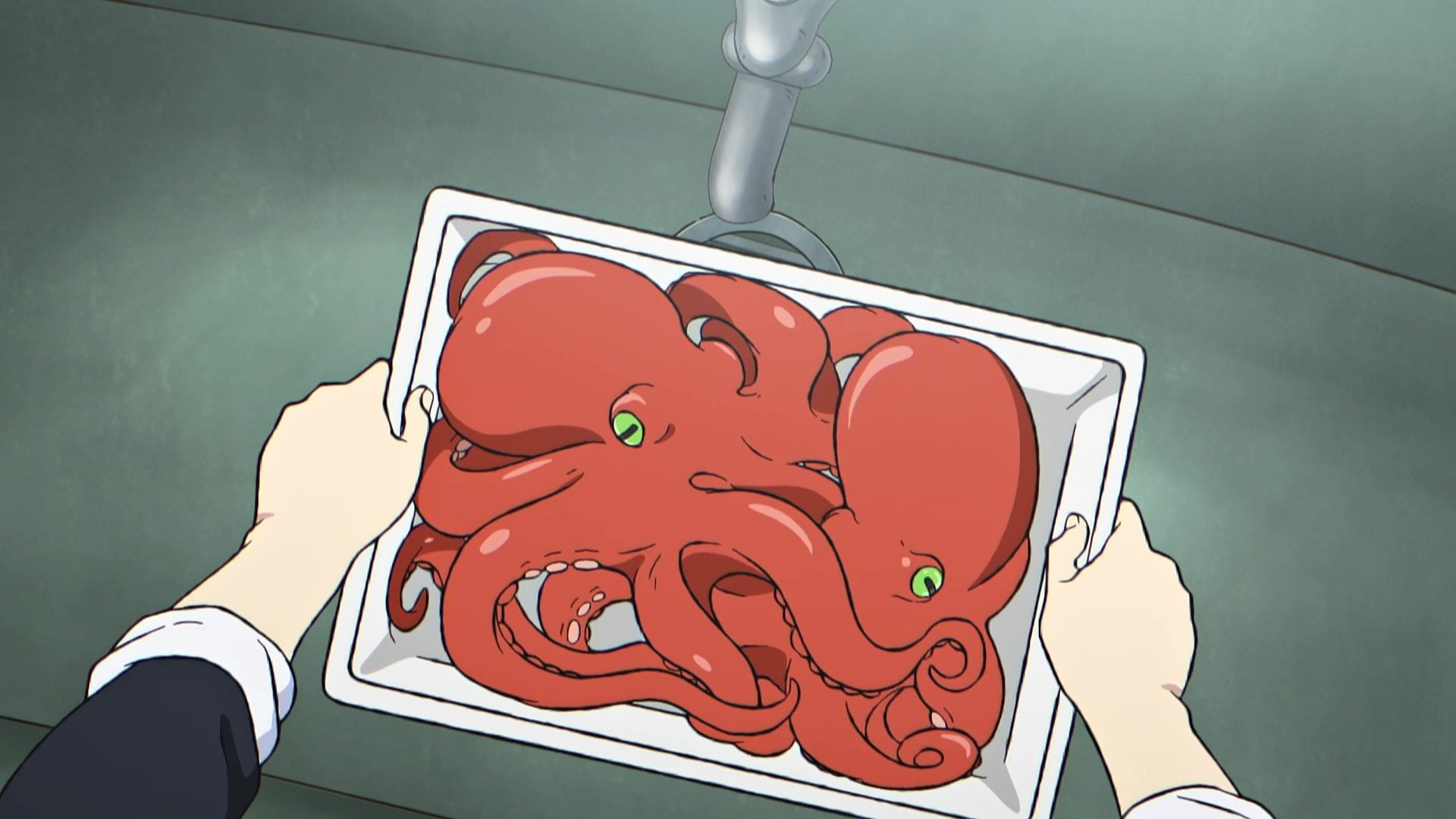 But that’s where the plaudits end. Not that it was particularly offensive or anything, but maybe that’s just the previous show traumatizing me talking. Just annoying generic ‘humor.’ Annoying because like most comedy these days, the joke was that the other kid looked at him, and he internally screamed “AAAAAAAAAAAAAAHHHHHHH!!!!!” That first scream was the worst by far, lasting nearly five seconds, and even though the ones to follow were less obnoxious, the damage had already been done. So when he goes merely “AAAHH!” when it comes time to pick up something dropped, or “OOOH!!” when he says hi, the gaggy overreaction thermocline has already been breached and the damage is done. And as mentioned above, the pacing was less than snappy, so the long… loooong pauses in between screams kept them from being too irritating, but also made it easy to completely zone out. Honestly, wondering if they were indeed going to have the kid be tentacle raped by his lunch was the most exciting experience for me.