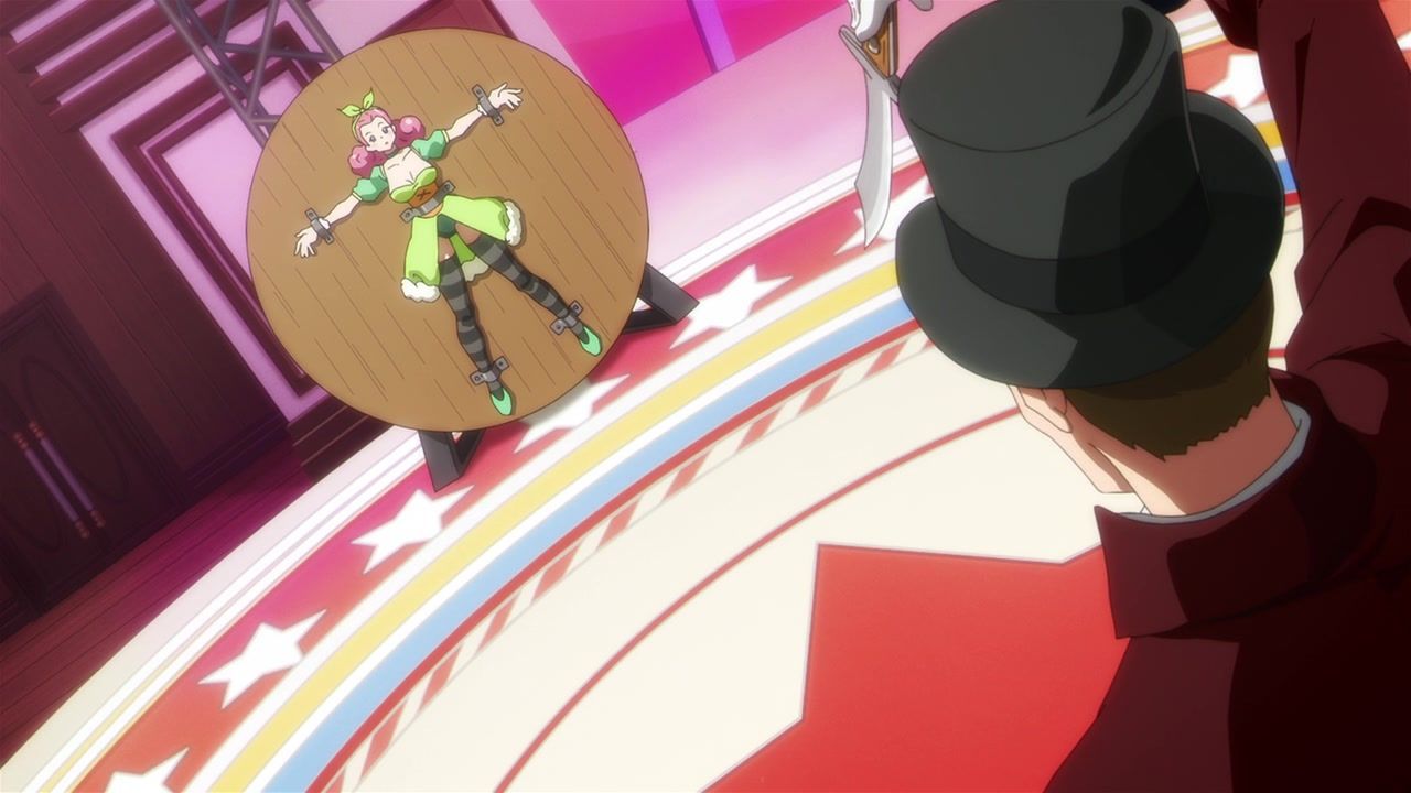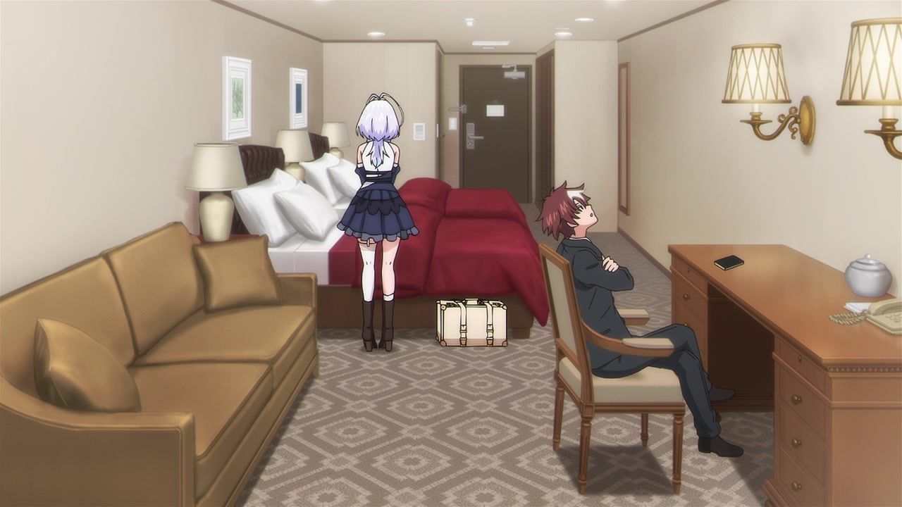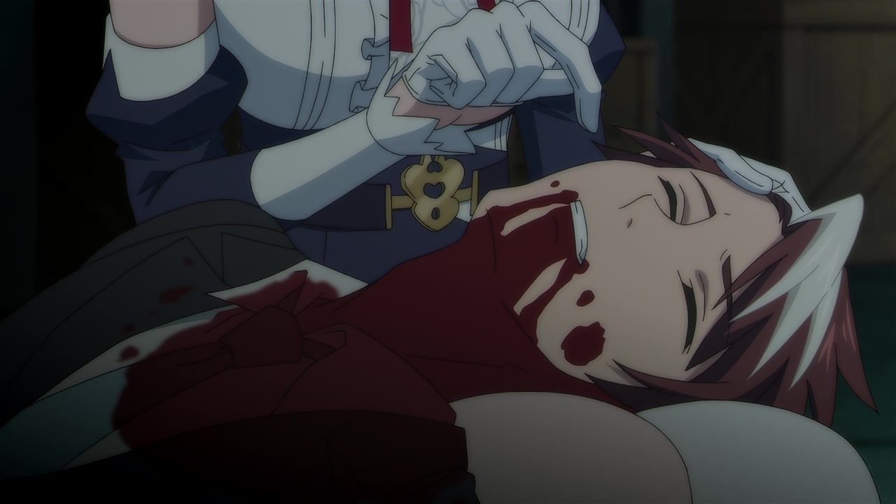 It takes forever to even reach the premise, and its whopping three and a half characters are hardly the cast needed for an actual mystery, especially when two of them are just busty teenage girls whose entire personalities are how horny they are for the protagonist and how much the camera can zoom in on their cleavage. One is deadpan and has giant boobs. The other is spunky and has a large rack. The protagonist himself… exists. That’s the greatest compliment I can pay to him. He at least doesn’t repeat himself seven times like cheat power dudes do, but contributes nothing to the non-events not-occurring in the episode anyway. He’s just a sack of meat that takes entirely too long to be stabbed, and for no payoff at that.