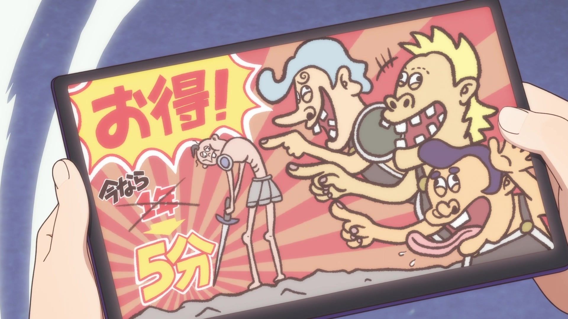 It does give the premise a legitmate try, and of all the first episodes today, this was one of the less tiresome ones, but the humor still grates. The nonsequiturs do work better when they are sufficiently weird, with an alternative art style to really sell it, and it’s rapid fire with the gags, in both screaming overreaction and deadpan rebuttal form. Still, at the end of the day, the gags are all still someone saying something random and then a one-liner announcement that the thing they said is indeed random, and I can’t say that I cracked a smile anywhere throught he episode, which is damning for a comedy.