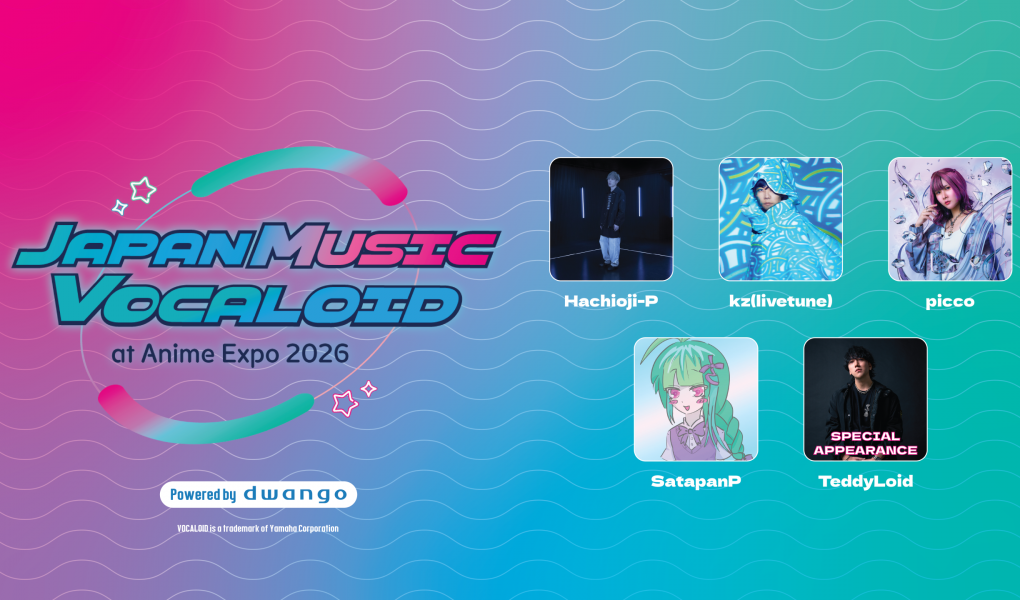 JAPAN MUSIC VOCALOID Powered by DWANGO is coming to Anime Expo 2026! Get ready for an electrifying night celebrating the sound of Vocaloid with an incredible line-up of legendary DJs straight from Japan! This one-of-a-kind event brings together some of the most influential producers in the Vocaloid scene for an unforgettable live experience.
