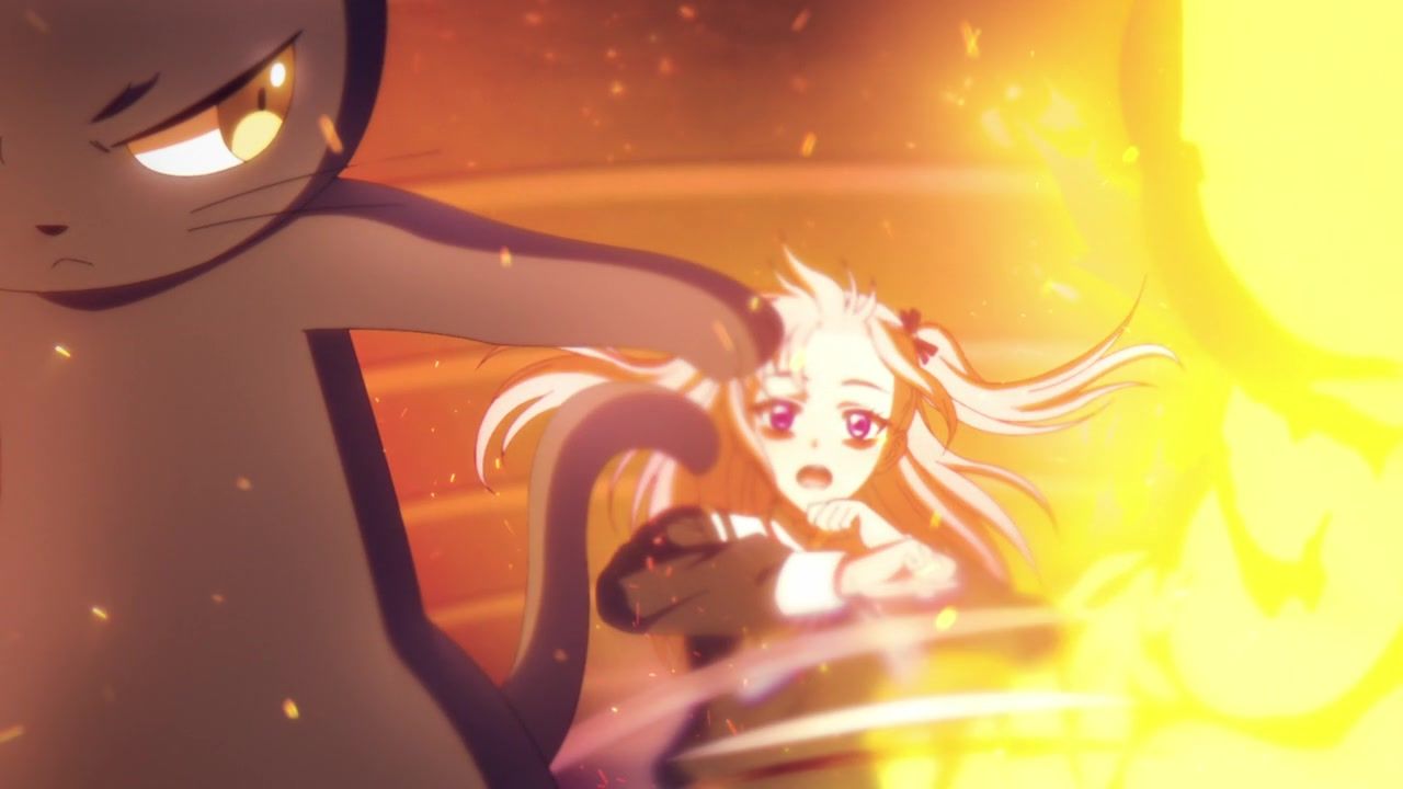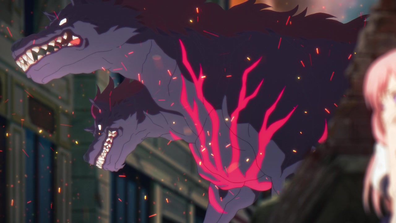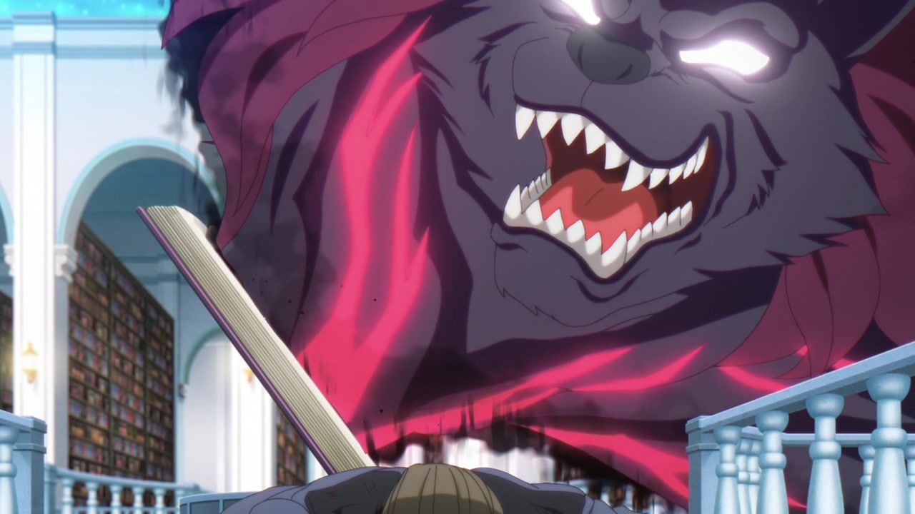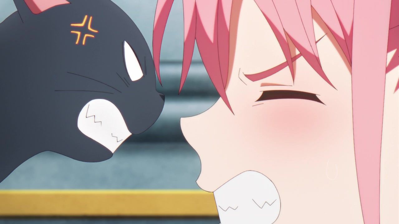 Not to say that I’d find it recommendable, so much as this episode was tolerable and accomplished the bare minimum of having a self-contained plot that still found time to set up the greater quest and whatnot without spending twenty extra minutes rambling incoherently about the certification process for magic existing. I will always take “things happen” over sitting at tables discussing adherence to bureaucracy. No. She just goes “Some magic is done by carving runes, huh?” “Yes.” And there we have it. We can move on to shooting fireballs at demon dogs. And the feline analingus. Very reminiscent of a hojillion magical girl things of 20 years ago where the protagonist was the stuffed animal. Which they then had sex with in the originating VN. Ah, nostalgia. We gave up stuffed animal fetishization and got cheat power reincarnation in return. …Great.