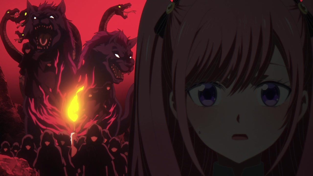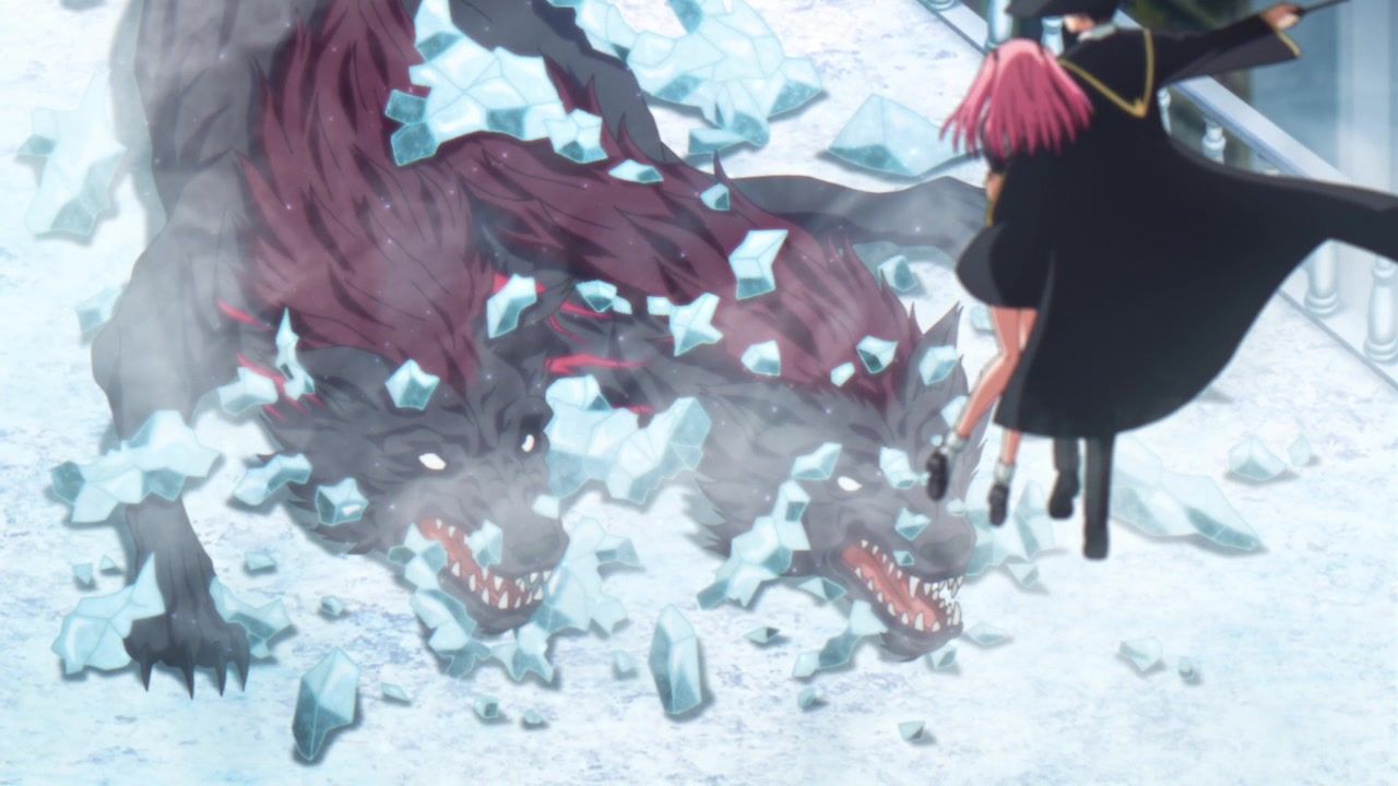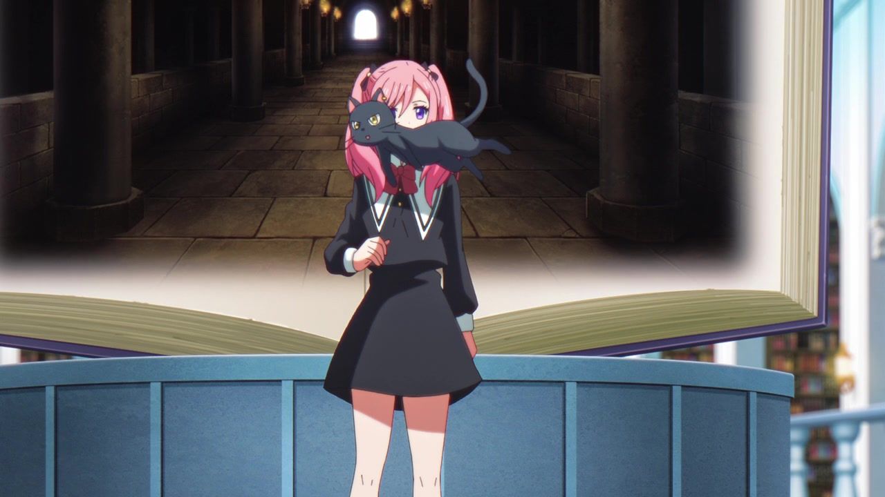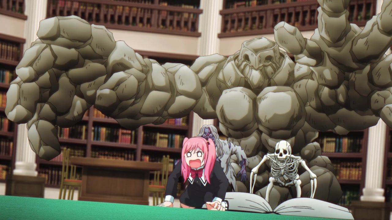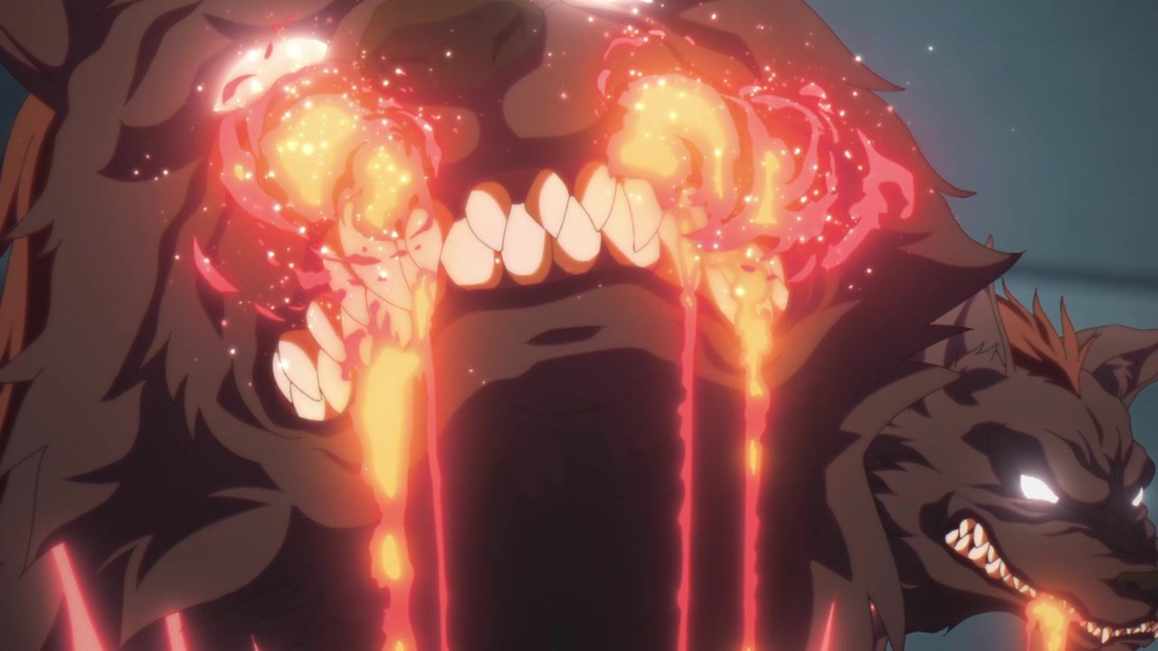 Not to say that I’d find it recommendable, so much as this episode was tolerable and accomplished the bare minimum of having a self-contained plot that still found time to set up the greater quest and whatnot without spending twenty extra minutes rambling incoherently about the certification process for magic existing. I will always take “things happen” over sitting at tables discussing adherence to bureaucracy. No. She just goes “Some magic is done by carving runes, huh?” “Yes.” And there we have it. We can move on to shooting fireballs at demon dogs. And the feline analingus. Very reminiscent of a hojillion magical girl things of 20 years ago where the protagonist was the stuffed animal. Which they then had sex with in the originating VN. Ah, nostalgia. We gave up stuffed animal fetishization and got cheat power reincarnation in return. …Great.