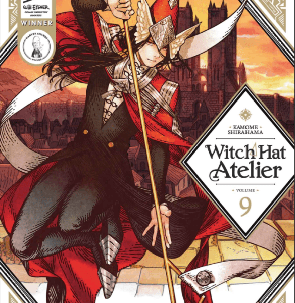 After eight volumes of covers depicting the bright-eyed students and considerate teachers that have defined Coco’s journey so far, it feels grimly appropriate that Witch Hat Atelier’s ninth volume spotlights one of the wardens of magic, the enforcers dedicated to preventing its dangerous misuse. Through their collective efforts to create a magical accessory that might aid their friend Custas, Coco and Tartah arrived at a sort of wing suit that let him soar through the air, granting him a mobility greater than he’d ever possessed before. Their gift was kindly intended and thoughtfully designed, but the realization of these wings may well have inspired Tartah to fly too close to the sun, driven by his sympathetic desire to grant magical aid to those who need it most, and thereby climbing like Icarus to a disastrous height.