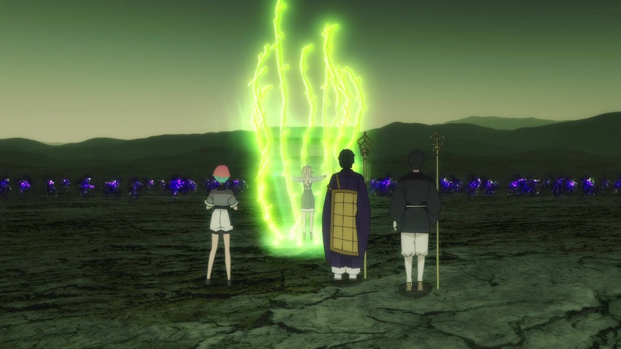 And then there’s this, where I expect mediocrity, and boy, do I get it. You’d think this episode would be about the sword tomboy that it starts out with, fighting evil clouds. Oh, did we not mention that? We no longer do territory games, now we’re fighting evil clouds. And losing. So she spits out her backstory, or more like a complete lack of one, and then… leaves. The climax of the episode doesn’t involve her whatsoever. The biggest evilest ghost is actually one of the Shinsengumi who… uh… needed to be told he was a ghost and everyone else was dead? That’s it? And then he was ready to go to heaven? But wait. Stay and train that one girl. Off screen. Also, the main character now has a magical girl transformation sequence. And her pet ghosts are searching for their kids? Legitimately, was any of this crap even mentioned before? Weren’t they on the run from the ghost of Nero?