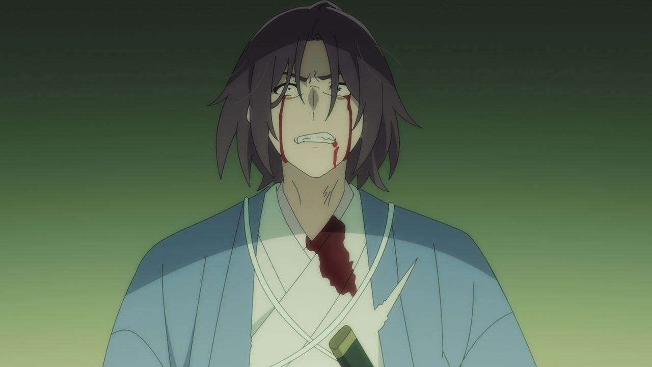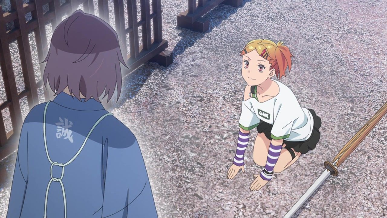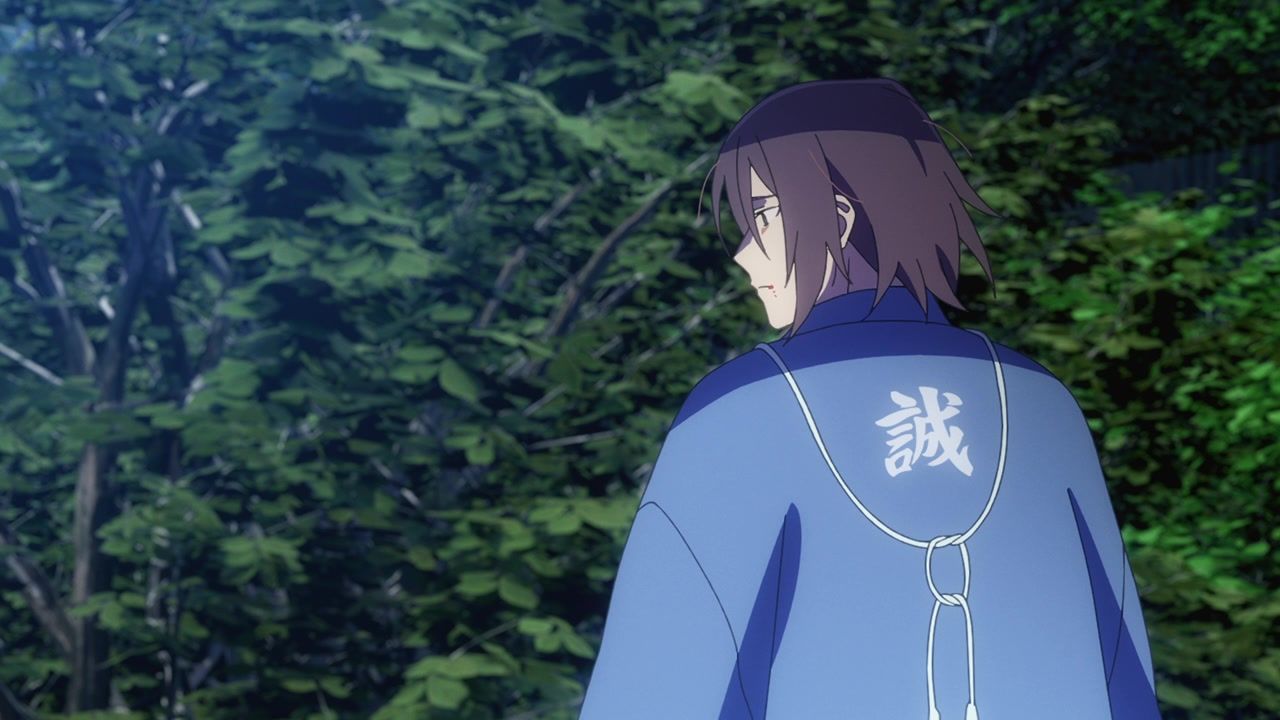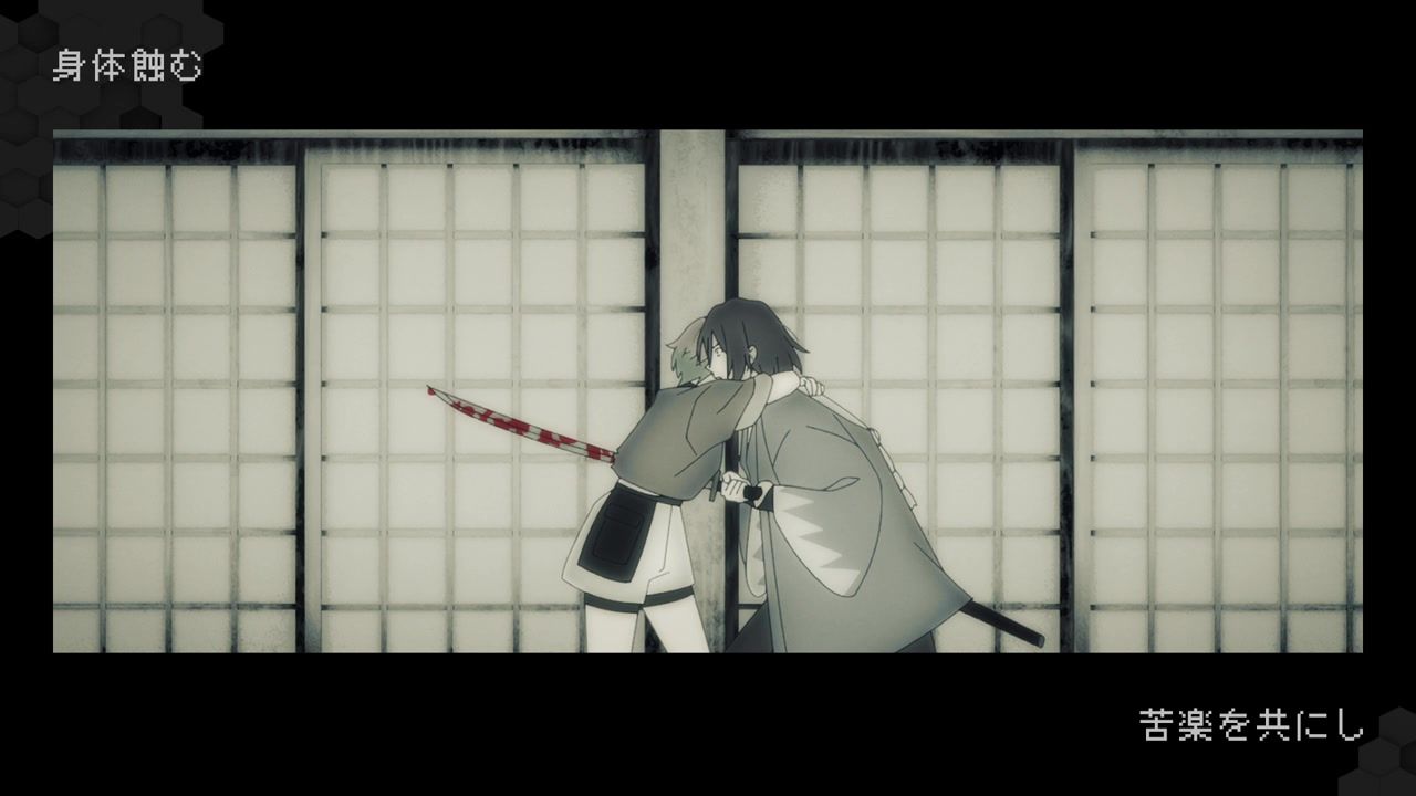 So still not anything approaching good, but unhinged in at least ways that baffle me instead of make me want to claw my cerebellum out from tedious repetition. The biggest anchor remains the terrible duet sequences, which are also meant to be the unique selling point and draw. Or at least the side hustle that they’re selling. You’d think more effort would go into highlighting those and making them part of the narrative instead of being treated like a black box where things get resolved essentially off-screen. Bizarrely at that, as the Shinsengumi dude all of a sudden gives up his metaphorical stabbings and instead starts grooving in place. Who could possibly think that looks good?
